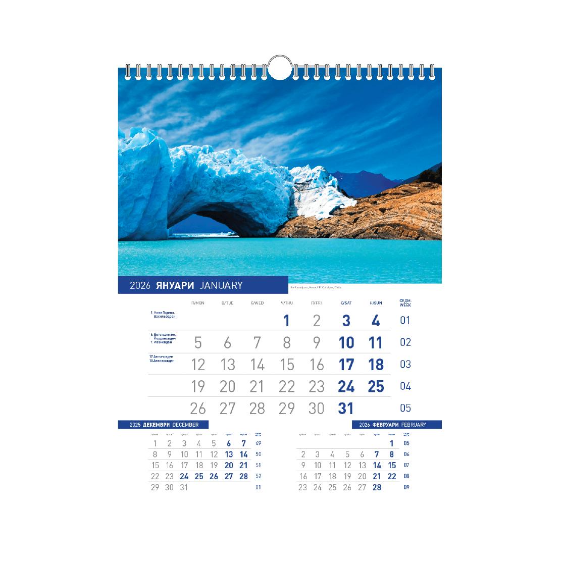 Стенен луксозен календар Пътешествия с 13 листа е стилен и практичен избор за дома, офиса или като подарък. Календарът съдържа календариум на два езика български и английски, което го прави удобен за различни потребители.