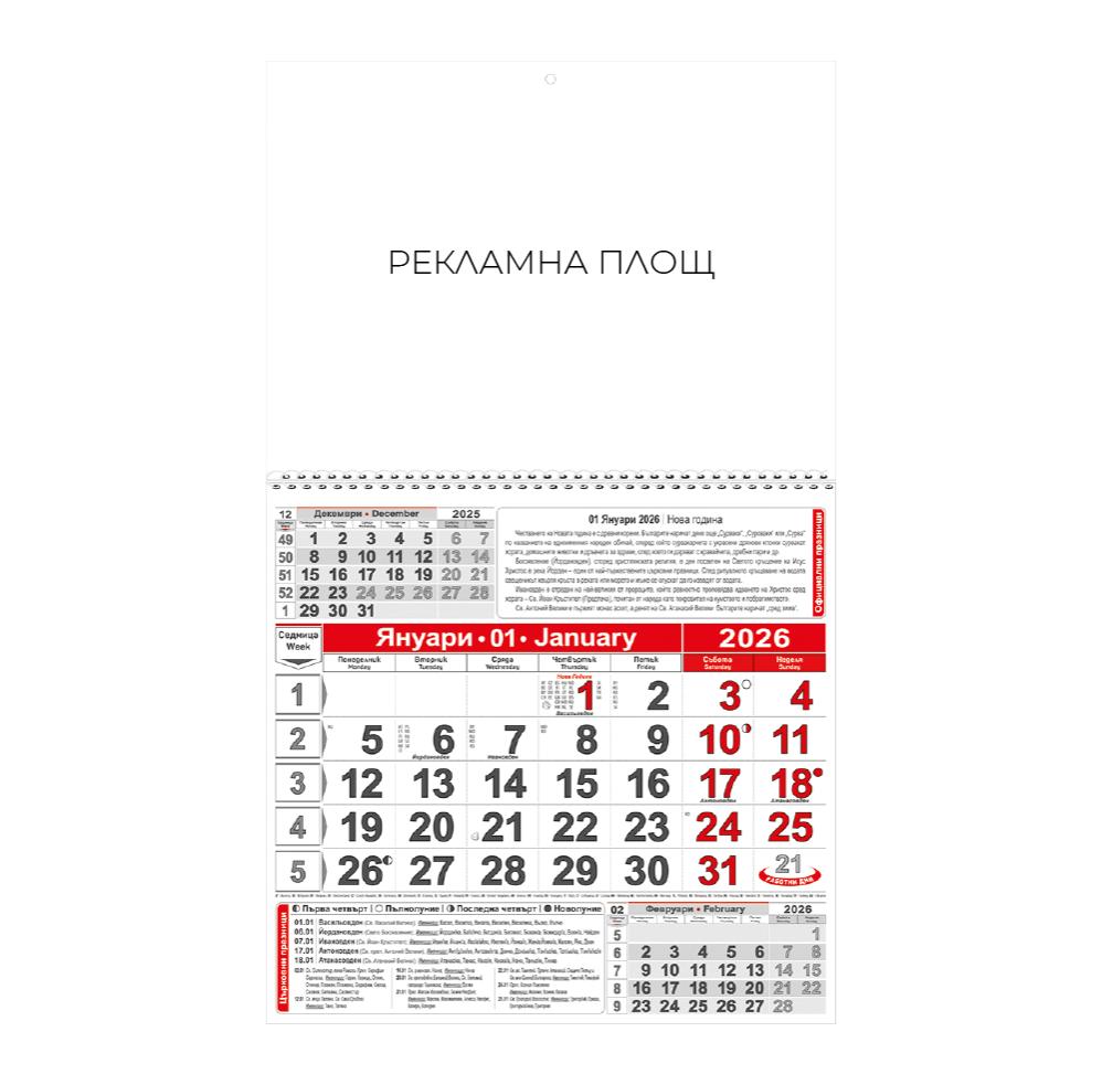 Стенният работен календар КС 1 е практичен и функционален календар за офиса или дома. Разполага с бяла подложка и един календариум, който осигурява удобен преглед на текущия месец.