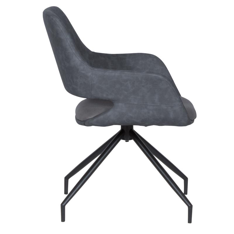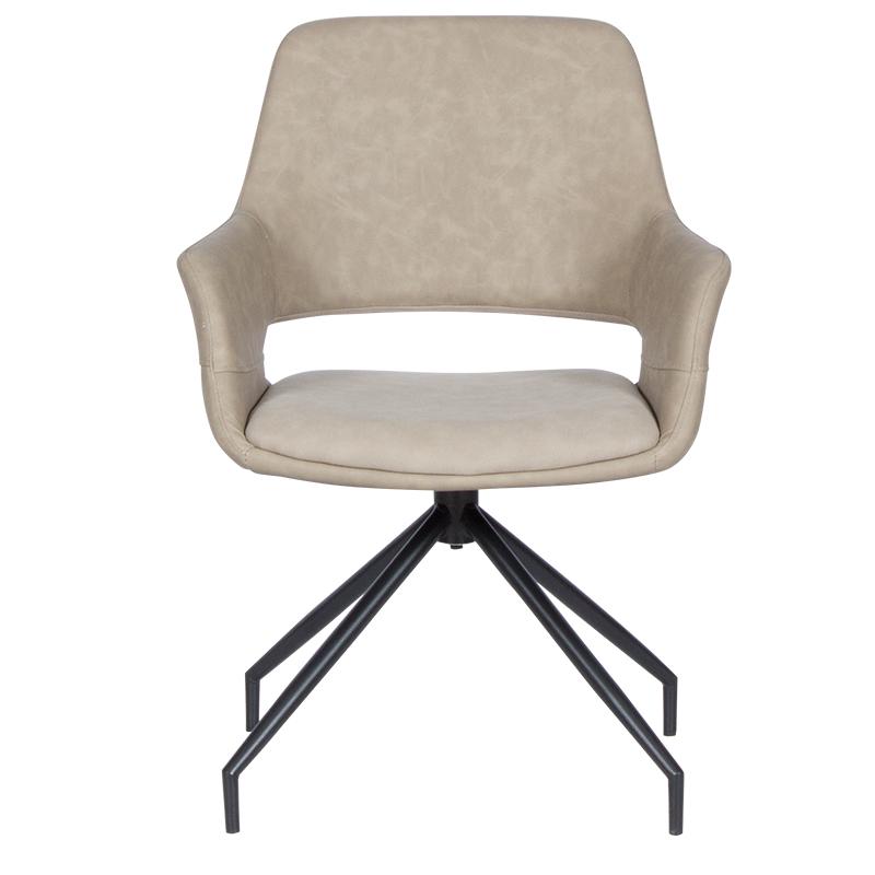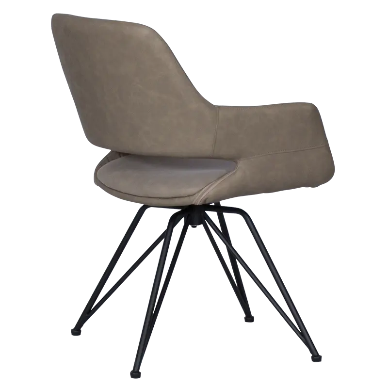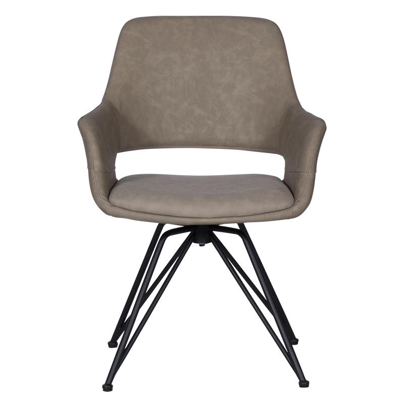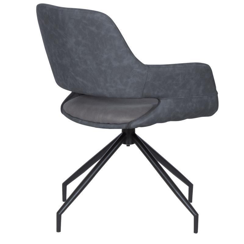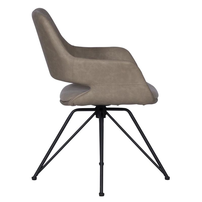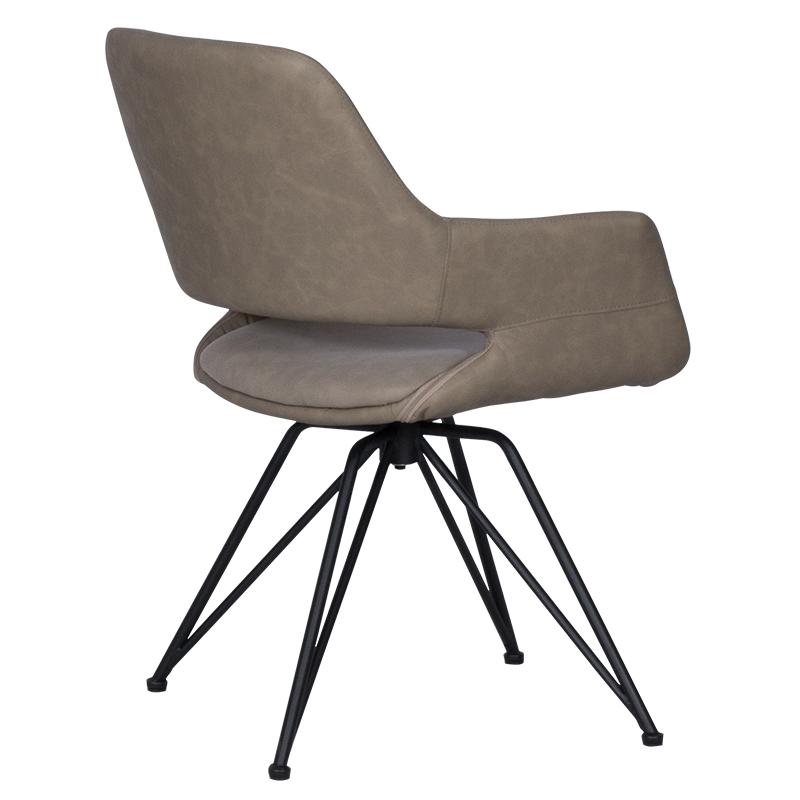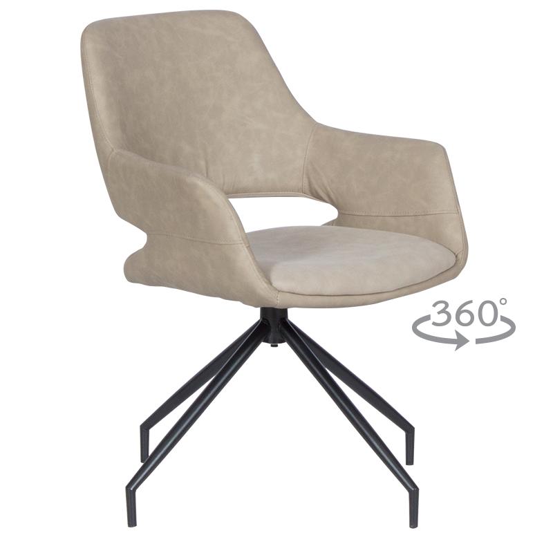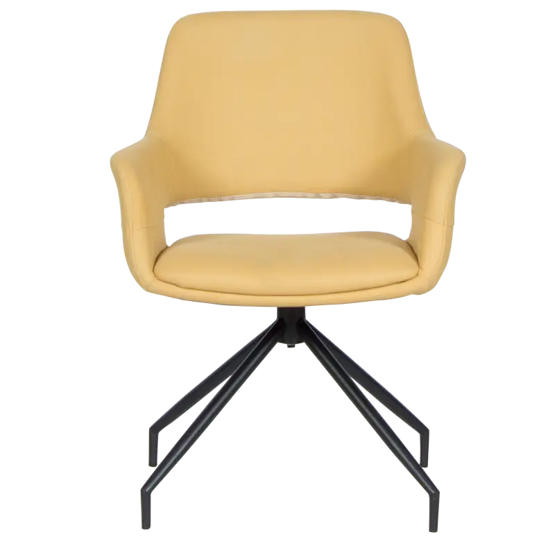 РАДЕЛИНА е трапезен стол с модерен дизайн, нестандартни крака и функция за въртене на седалката на 360°. Изработен е от висококачествена дамаска и праховобоядисан метал.