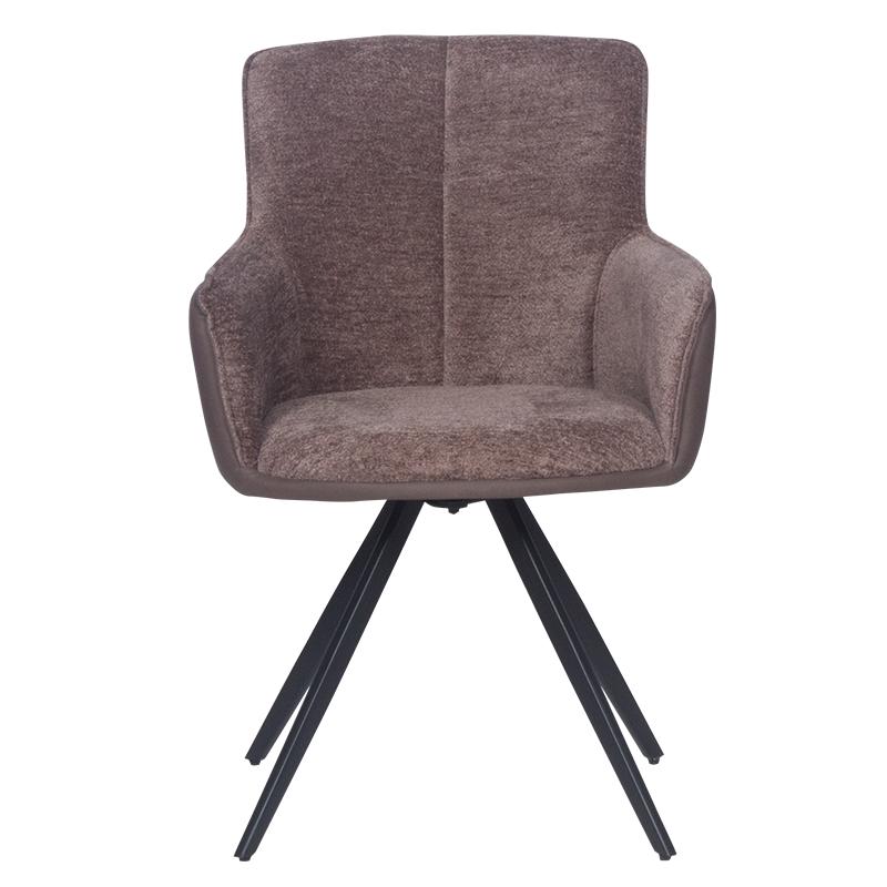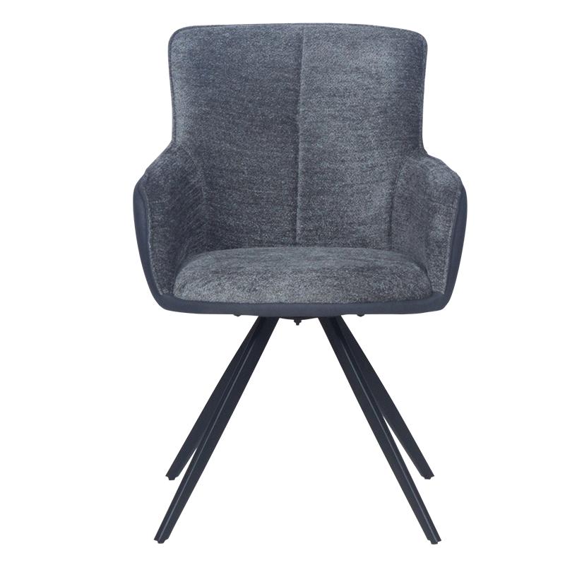 РАДИНЕЛА е удобен трапезен стол с интересен дизайн. Моделът разполага с подлакътници, които допринасят за комфорта и завършват цялостната му визия. Облегалката и седалката са изработени от висококачествена дамаска, а основата от праховобоядисан метал в черен цвят.