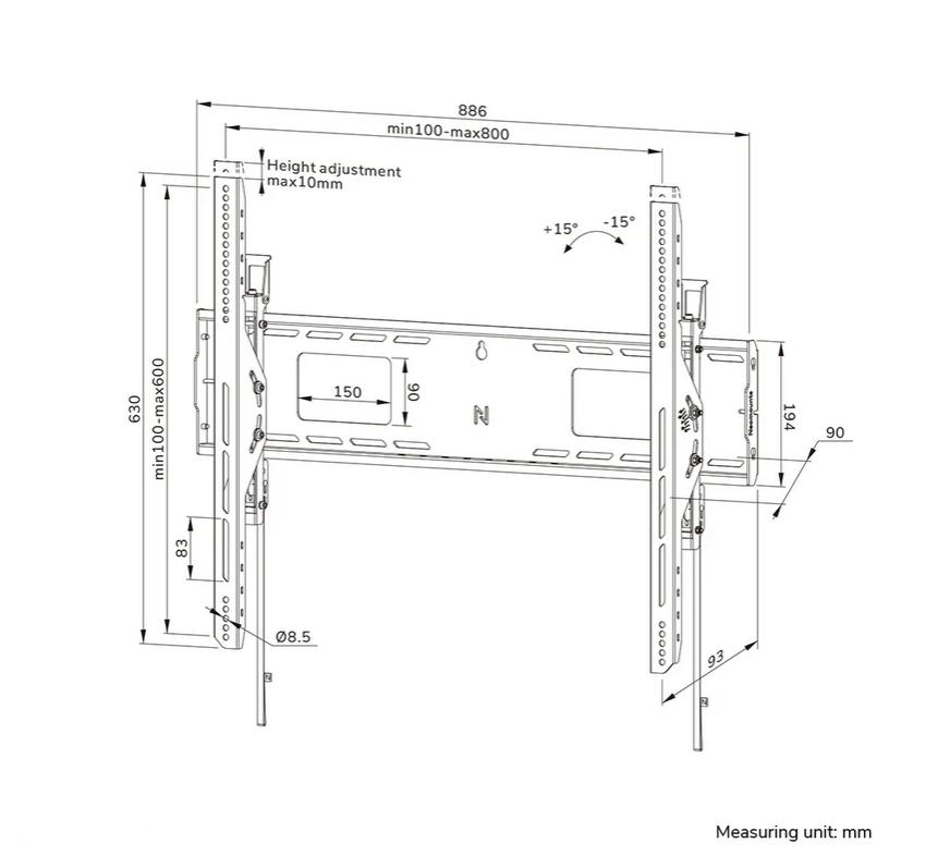 | Max VESA размер, mm | 100x100 - 800x600 |