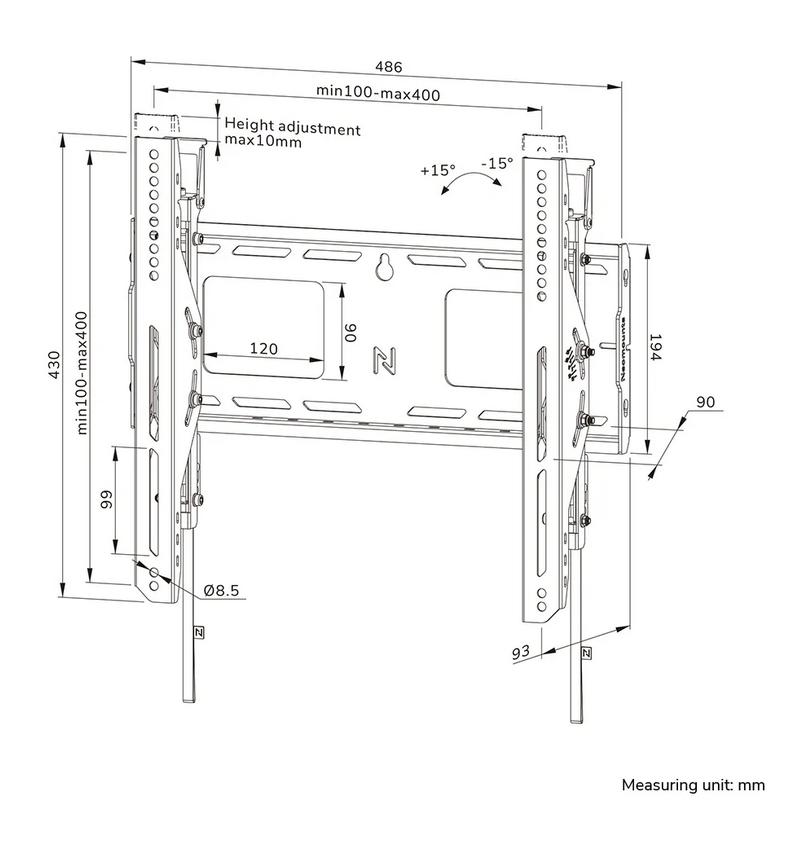 | Регулируема дължина | Height: 43 cm (adjustment: 1 cm), Width: 48.6 cm, Depth: 9.3 cm, Adjustment type: Manual |