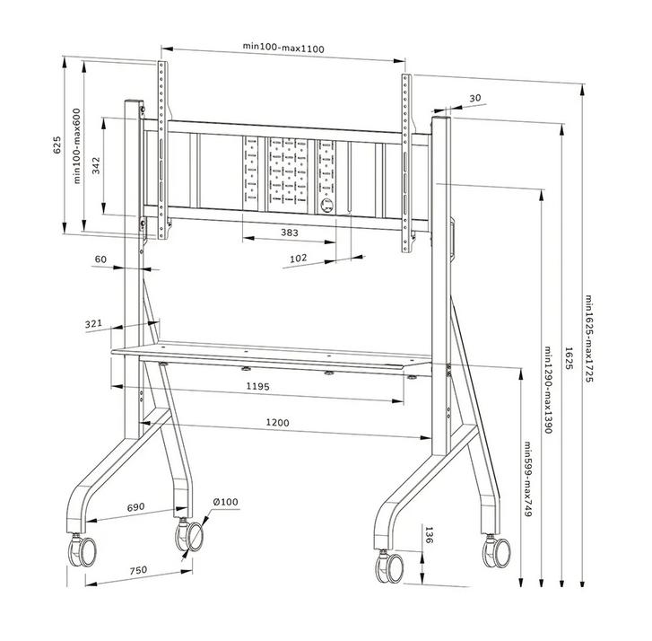 | Max VESA размер, mm | 100x100 - 1100x600 |