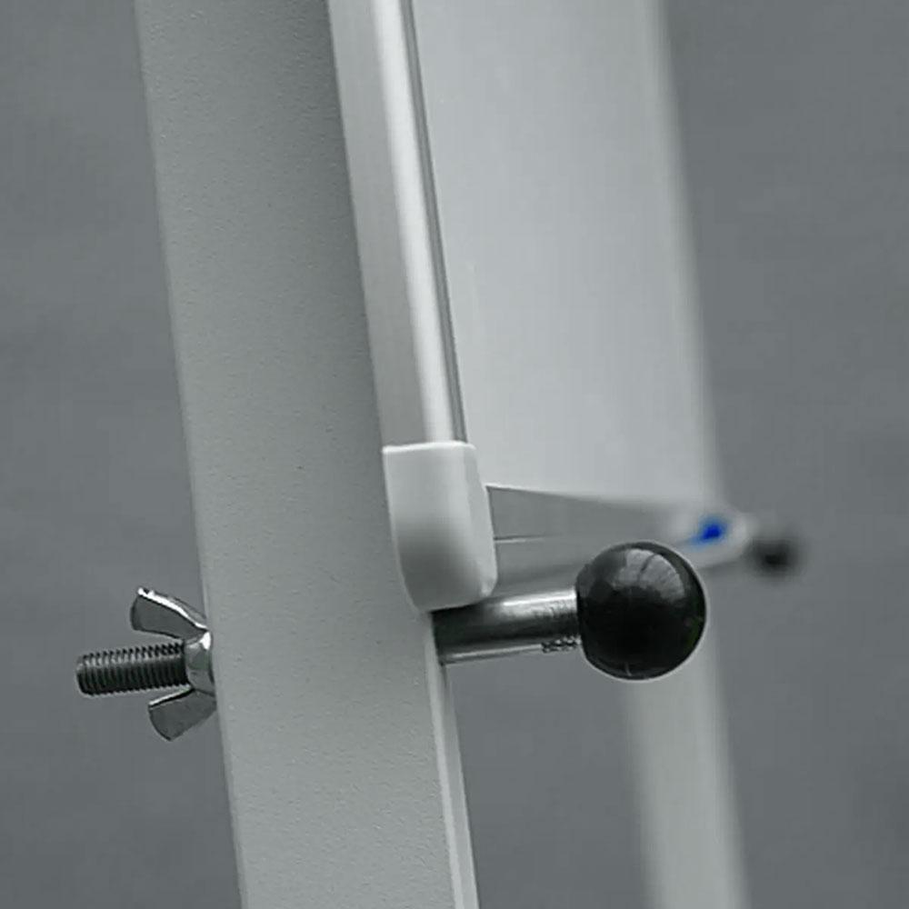 Стоманена мобилна стойка за всички видове дъски е практично решение за офиси, класни стаи и конферентни зали. Подходяща за монтаж на дъски с размери от 60x90 до 120x90 см. Изработена е от здравa стомана, което гарантира стабилност и дълготрайност. Благодарение на регулируемата височина, стойката може да се адаптира според нуждите на потребителя. Колелата със заключващ механизъм позволяват лесно преместване и сигурно фиксиране на избраното място.