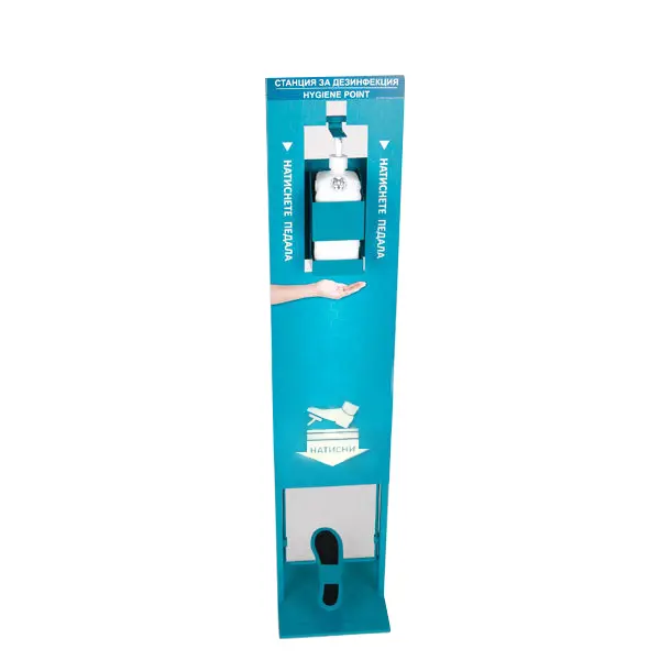 Станцията за дезинфекция е предназначена за контрол на персоналната хигиена по време на работния ден, както и при влизане и излизане от работната или търговска зона. Станцията е изключително компактна и стабилна, което позволява да я поставите на удобно за вас и служителите място. Дизайнът осигурява бърз и лесен достъп до дезинфектанта, който е разположен в горната част на станцията за дезинфекция. Идеална е за силно посещавани среди за ефективна дезинфекция на ръцете и безконтактна употреба.