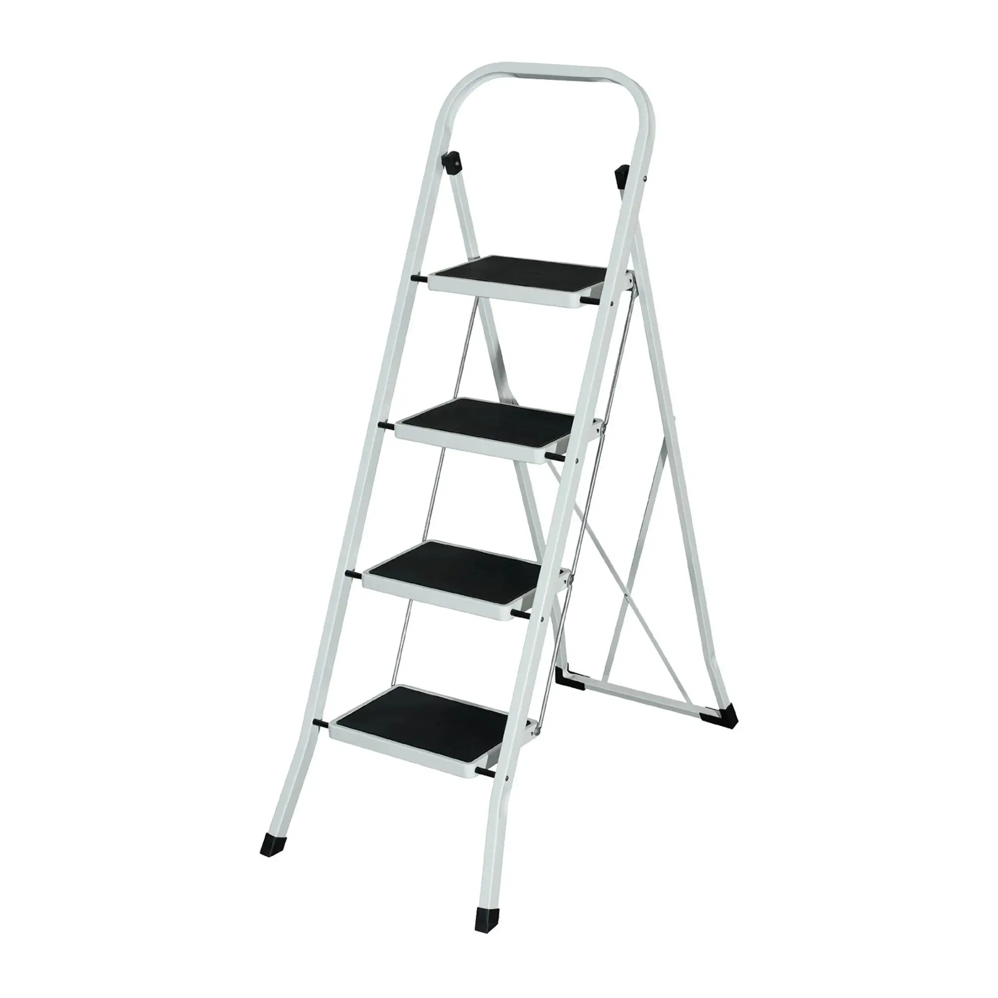 Стълба метална 4 стъпала е практична и стабилна стълба, подходяща както за офиса, така и за домакинството. Конструкцията е здрава и надеждна, осигуряваща комфорт и сигурност при работа на височина. Стълбата разполага с четири широки стъпала, които осигуряват удобна и стабилна опора. Горната греда предоставя допълнителна опора и баланс по време на използване. Благодарение на гумените крачета против плъзгане, стълбата стои стабилно върху различни повърхности и предпазва пода от надраскване. Подходяща е за почистване, подреждане, ремонтни дейности и други ежедневни задачи в дома или работното пространство.