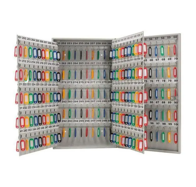 Комплектът включва: ключодържатели за 300 броя ключове и комплект дюбели