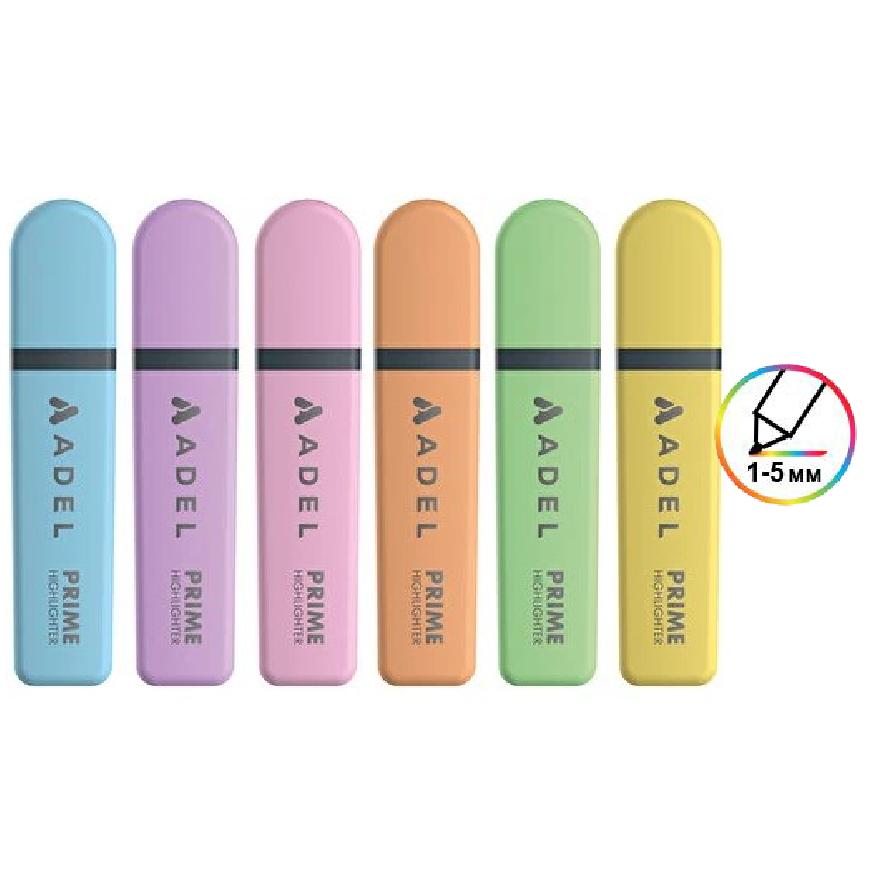 Текст маркер Adel 8 цвята страхотни маркера, от които 2 неонови и 6 в пастелни цвята. Маркерите имат скосен връх, което позволява регулиране на дебелината на писане от 1.00 до 5.00 мм.