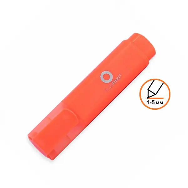 Текст маркер Bluering оранжев цвят със скосен връх, който ще ви даде възможност за маркиране с 3 различни размера. С него ще можете да подчертавете с тънки линии 1 мм, по-плътни линии 2 мм, както и да маркирате текста с цялата дължина на писеца, която е 5 мм. Мастилото на текст маркерите Bluering е на водна основа, невидима при копиране и изпращане по факс.