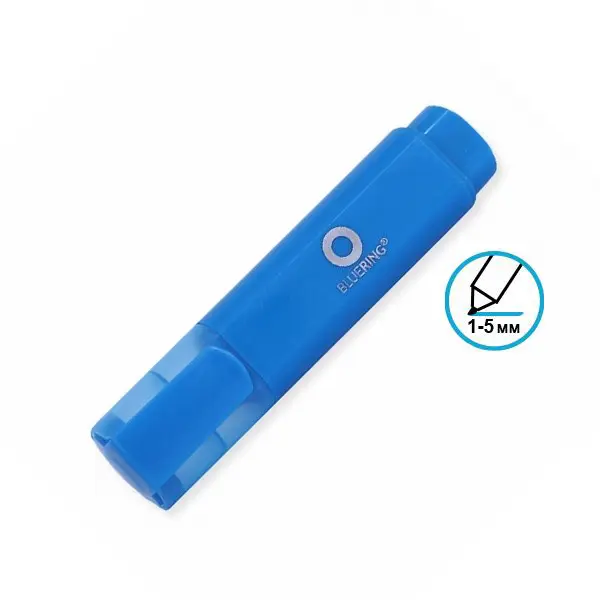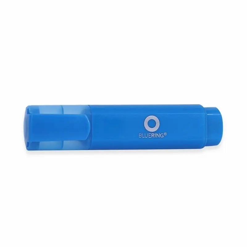 Текст маркер Bluering син цвят със скосен връх, който ще ви даде възможност за маркиране с 3 различни размера. С него ще можете да подчертавете с тънки линии 1 мм, по-плътни линии 2 мм, както и да маркирате текста с цялата дължина на писеца, която е 5 мм. Мастилото на текст маркерите Bluering е на водна основа, невидима при копиране и изпращане по факс.