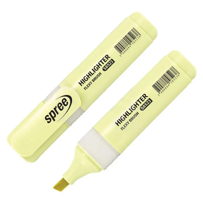 Текст маркерът Flexy Brush Pastel жълт е идеален е за подчертаване на текстове, както и за рисуване на линии с различна дебелина.Меките пастелни цветове ще придадат на работата ви стилен вид. Подходящ за всички видове хартия.