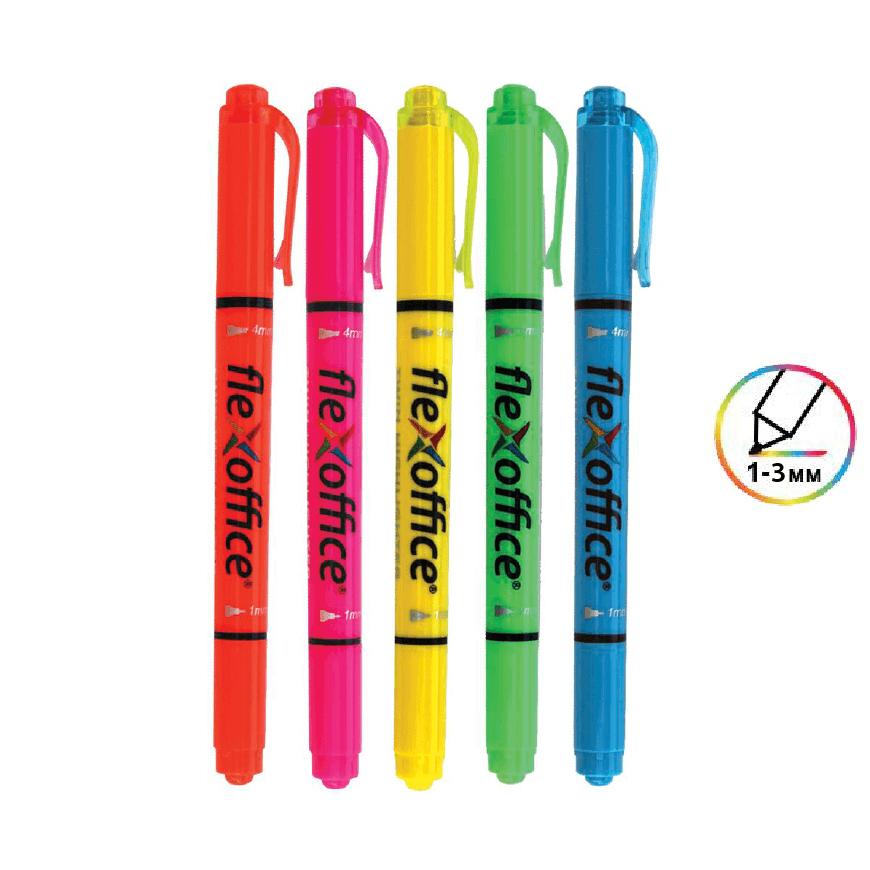 Комплект текст маркери FO Pen с объл и скосен връх подходящ за подчертаване на текст с различна дебелина от 1.0 до 3.0 мм. Всяка писалка съдържа ярко флуоресцентно мастило за перфектно видимо маркиране без избледняване.