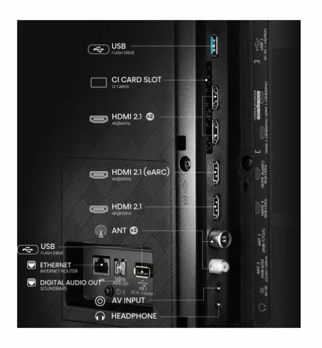| Изводи за свързване | 4 HDMI, 2 USB, S/PDIF out, CI+ Slot, Composite (AV) in, 2 RF In, Audio (L/R) in |