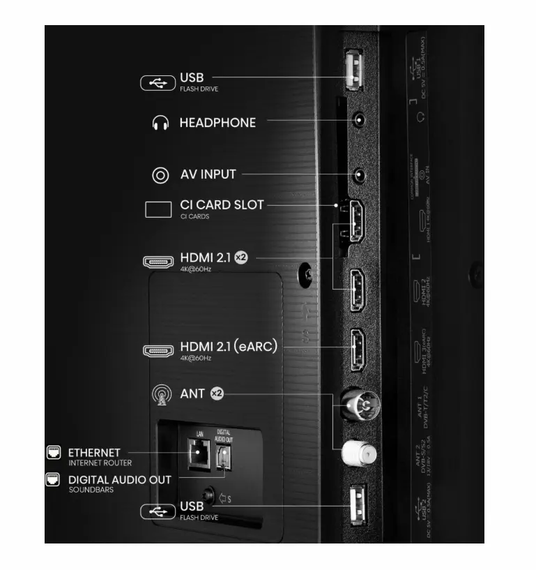 | Изводи за свързване | 3 HDMI, 2 USB 2.0, S/PDIF out, Audio (L/R) in, Headphone out, Composite (AV) in, 2 RF in, CI+ |