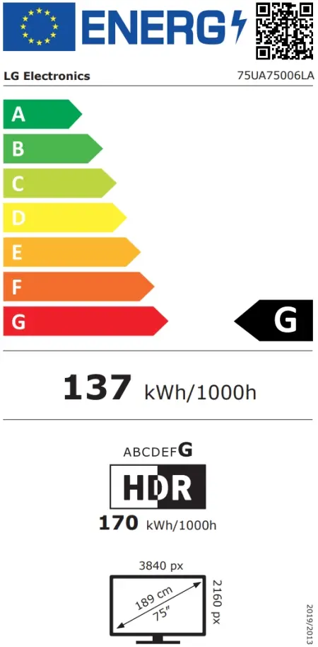 | Размер на екрана, inch | 75" (190.50 cm) |