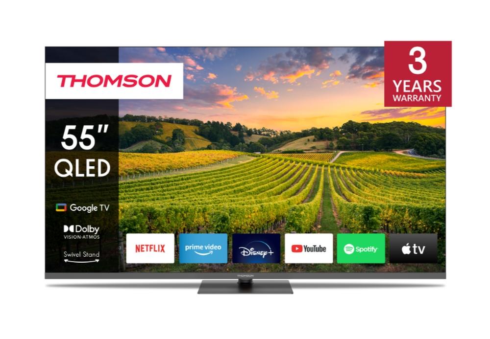 Телевизор Thomson 55' QLED Google TV; 3840 x 2160 (4K UHD), 4000:1, QLED, 60 Hz, DVB-T/T2/C/S/S2, HDR10, Wi-Fi, Bluetooth, LAN, HDMI 2 (2.0) + 2 (2.1), USB 2 (2.0) + 1 (3.0),Central Swivel Stand, Dark gray