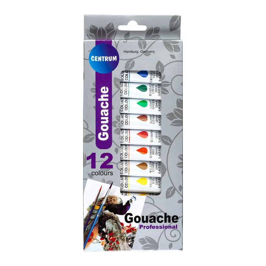 Висококачествени ученически темперни бои Centrum гуаш в метални тубички комплект от 12 цвята в картонена кутия.