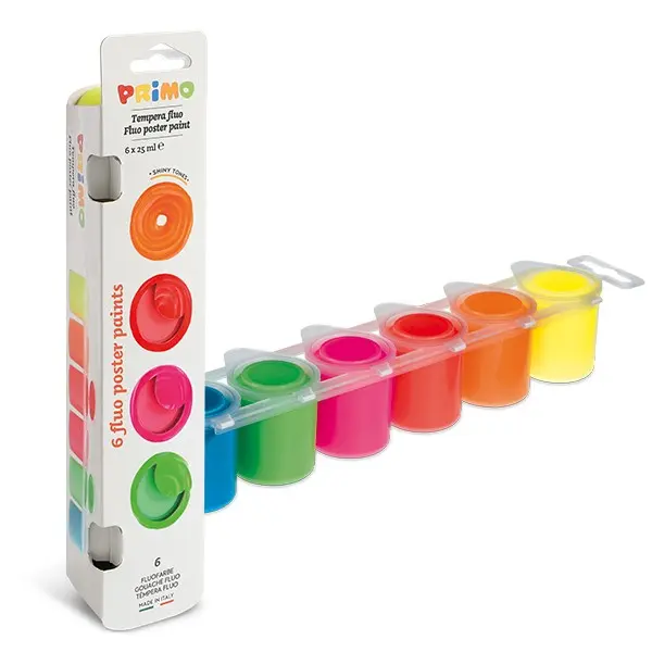 Те няма да проблеснат през нощта, но ще осветят вашите творчески творби, предавайки радост и енергия! Темперните неонови бои на Primo добавят удивителен знак към вашите картини. Готова смес флуоресцентна боя за плакати с най-добро качество в диапазон от шест цвята.