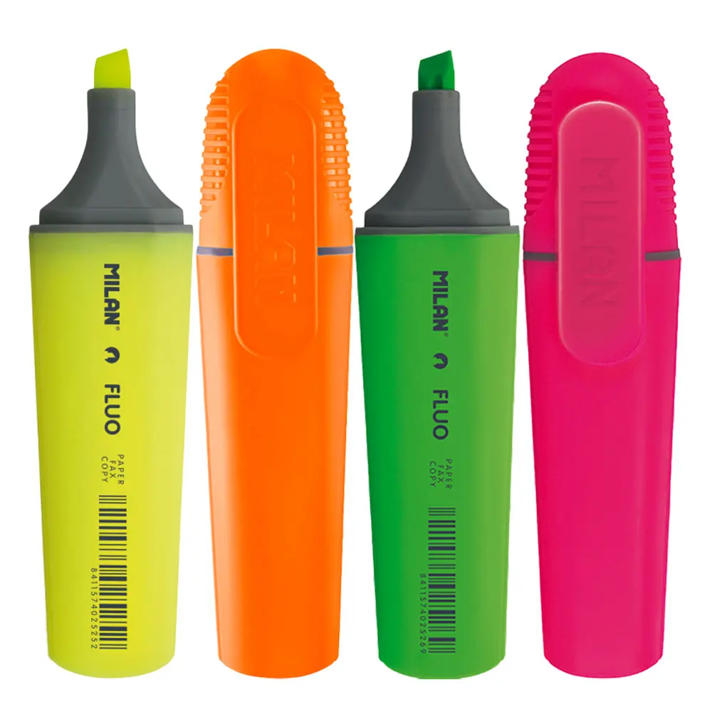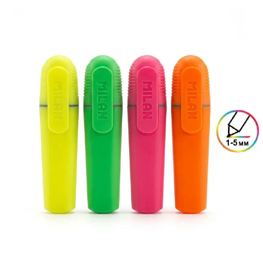 Текст маркерите Milan комплект 4 цвята предлагат висококачествено мастило на водна основа, което е бързосъхнещо и светлоустойчиво за дълготрайно и ясно подчертаване без размазване. Специалната формула на мастилото позволява универсална употреба върху стандартна хартия, фотокопия и термохартия (касови бележки и факсове), без да размазва или поврежда текста.