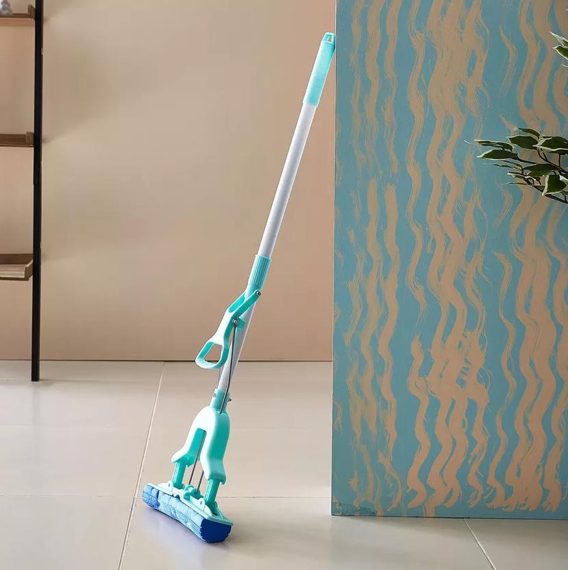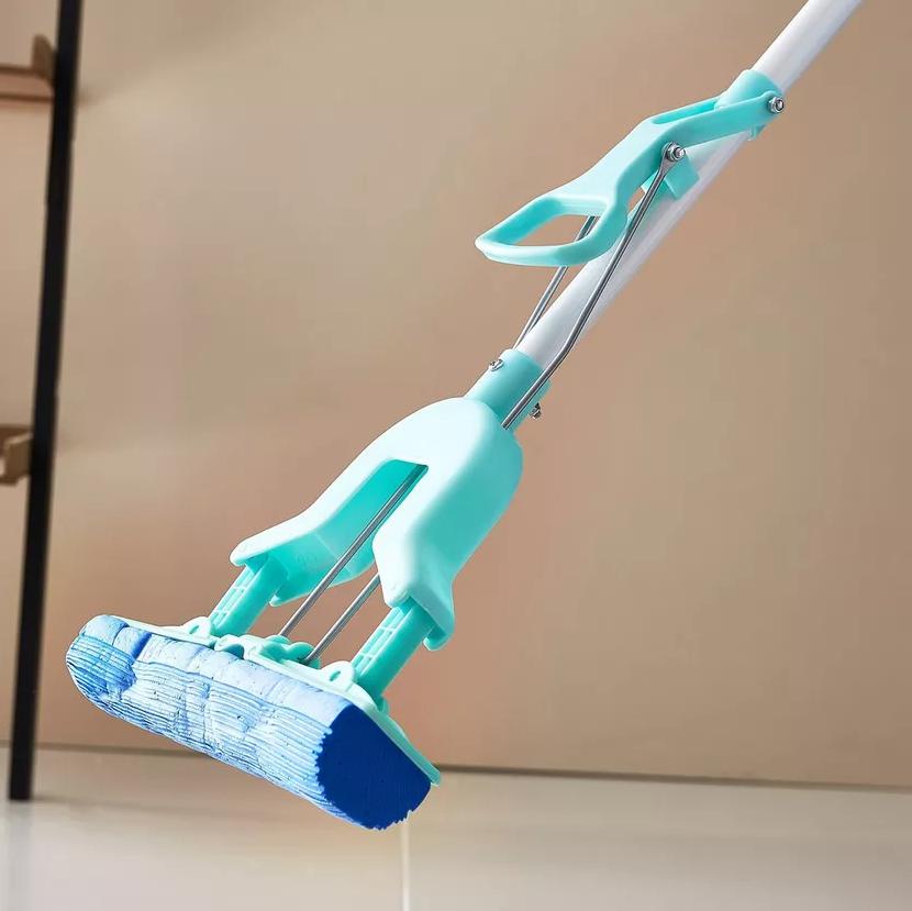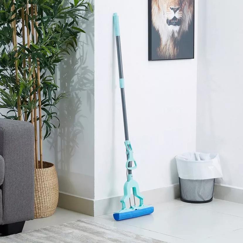 Топ мопът е изработен с телескопична дръжка, което прави почистването с него изключително практично и ефективно. Благодарение на мекотата на гъбата, безотказно абсорбира разляти течности и почиства животинска козина.