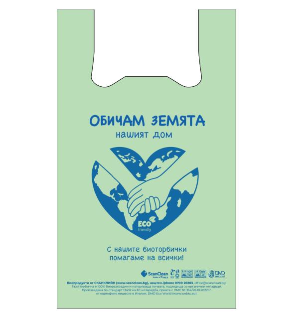 Торбичка биоразградима тип потник за многократна употреба, 100% биоразградима и компостираща, произведена в Италия от зеленчукови нишестета по технология BIOCARTENE® и сертифицирани от TUV Austria.