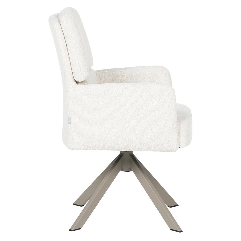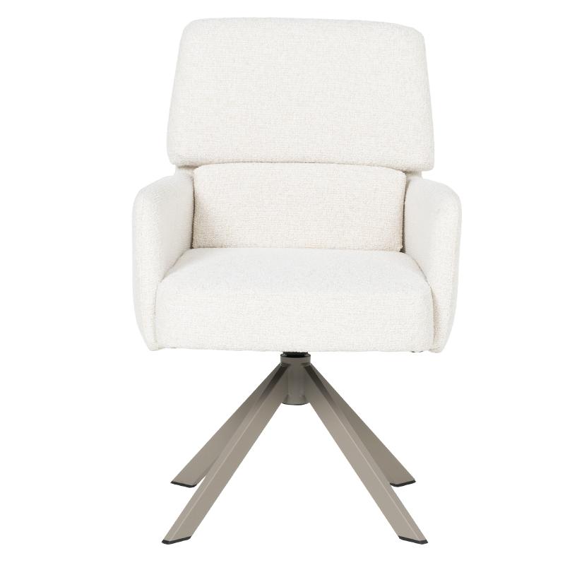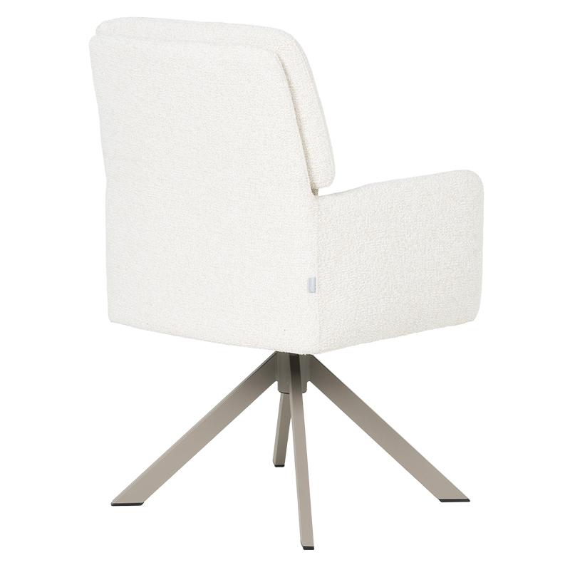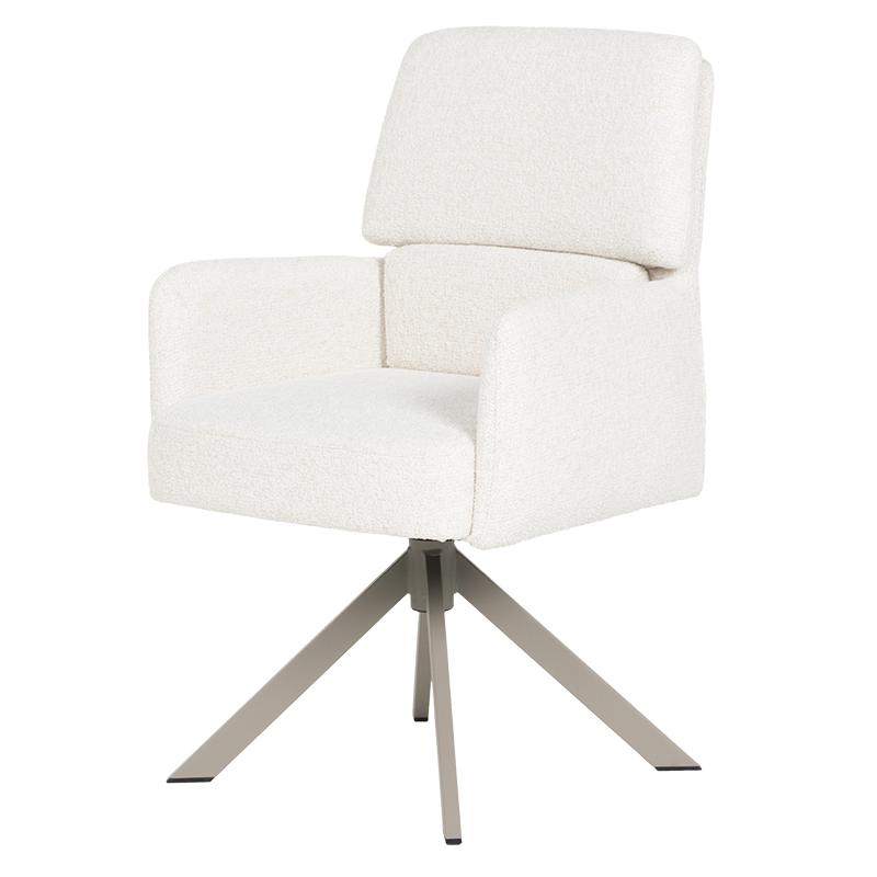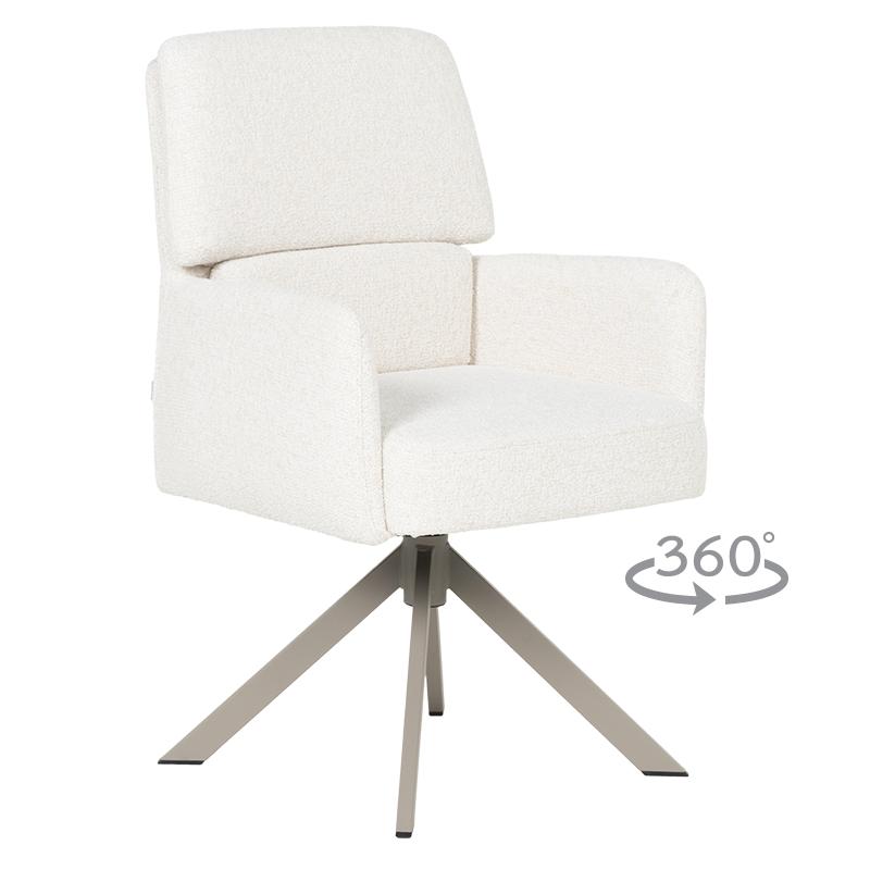 Трапезният стол НАЙДЕН съчетава модерен дизайн с изключителна функционалност. Седалката, тапицирана с висококачествена дамаска и оборудвана с покет пружини, предлага ненадминат комфорт, а удобните подлакътници допълват усещането за уют и релакс. Функцията за въртене на 360° с автоматично връщане в начална позиция осигурява практичност и лекота при използване, докато масивната основа от праховобоядисан метал с перлен блясък придава елегантност и стил. Впечатляващата люлееща функция е невероятна екстра, която допълнително засилва усещането за комфорт и релаксация. Столът издържа натоварване до 120 кг, което гарантира неговата устойчивост и дълготрайна употреба, превръщайки го в идеалния избор за всяка съвременна трапезария, където се ценят комфортът и качеството.