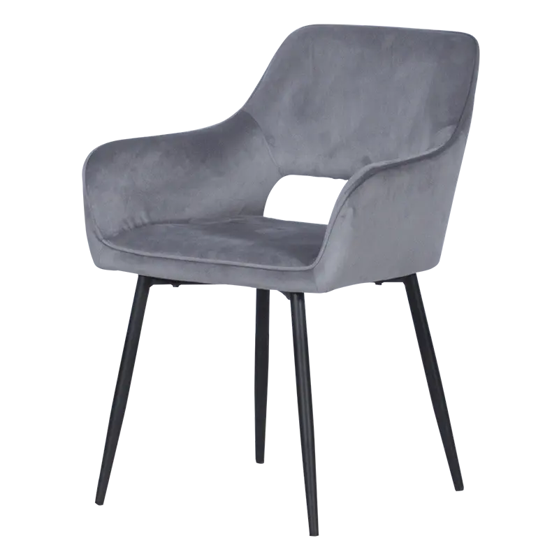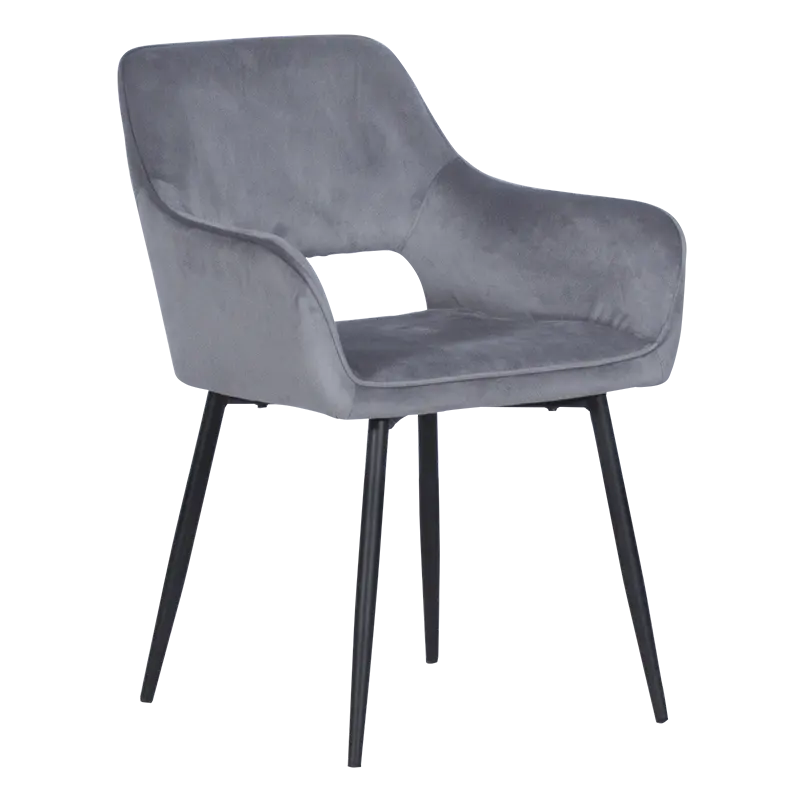 ДЕМИРА e удобен трапезен стол с модерна и елегантна визия. Той е изработен от луксозна, нежна дамаска и здрави крака от праховобоядисан метал.