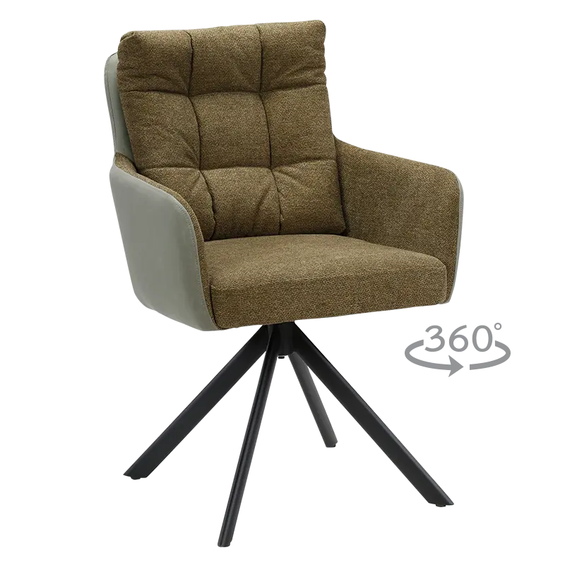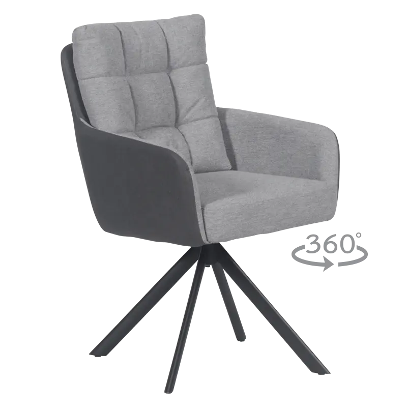 ЕВА е трапезен стол от ново поколение, с функция за въртене на седалката на 360°. Той е модерен, стилен и удобен. За изработката му е използвана дамаска и праховобоядисан метал за краката.