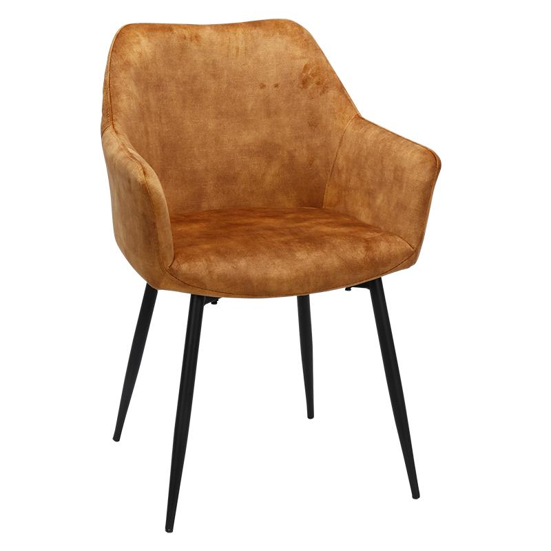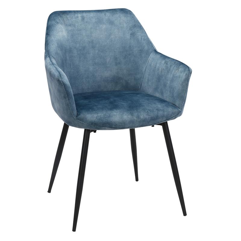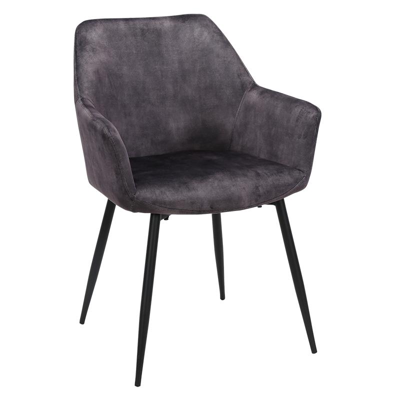 Трапезният стол ЕВЕЛИН e модел с модерна и привличаща визия. Удобните форми на облегалката му ще ви осигурят несравним комфорт, а подлакътниците завършват дизайна му съвършено. Моделът е изработен от висококачествена дамаска и праховобоядисана метална основа.