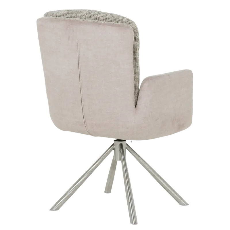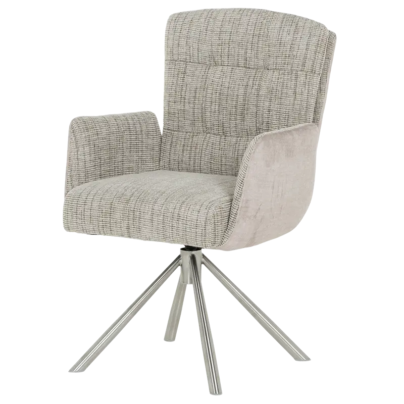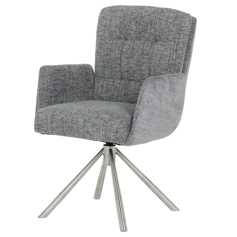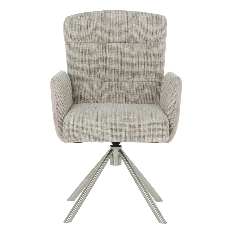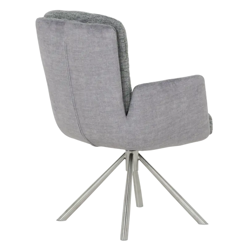 Трапезният стол КЕЙЛА предлага перфектен баланс между модерен дизайн и изключителна функционалност. Седалката, тапицирана с висококачествена дамаска и оборудвана с покет пружини, осигурява ненадминат комфорт, а подлакътниците допълват усещането за уют. Релакс облегалката с накланяне назад е ключова функция, която осигурява допълнително удобство за почивка и релаксация. Масивната основа от праховобоядисан метал с перлен блясък не само придава елегантен външен вид, но и гарантира стабилност. КЕЙЛА е проектиран да издържа до 120 кг, което го прави здрав и надежден избор за всяка модерна трапезария, съчетавайки комфорт и стил.