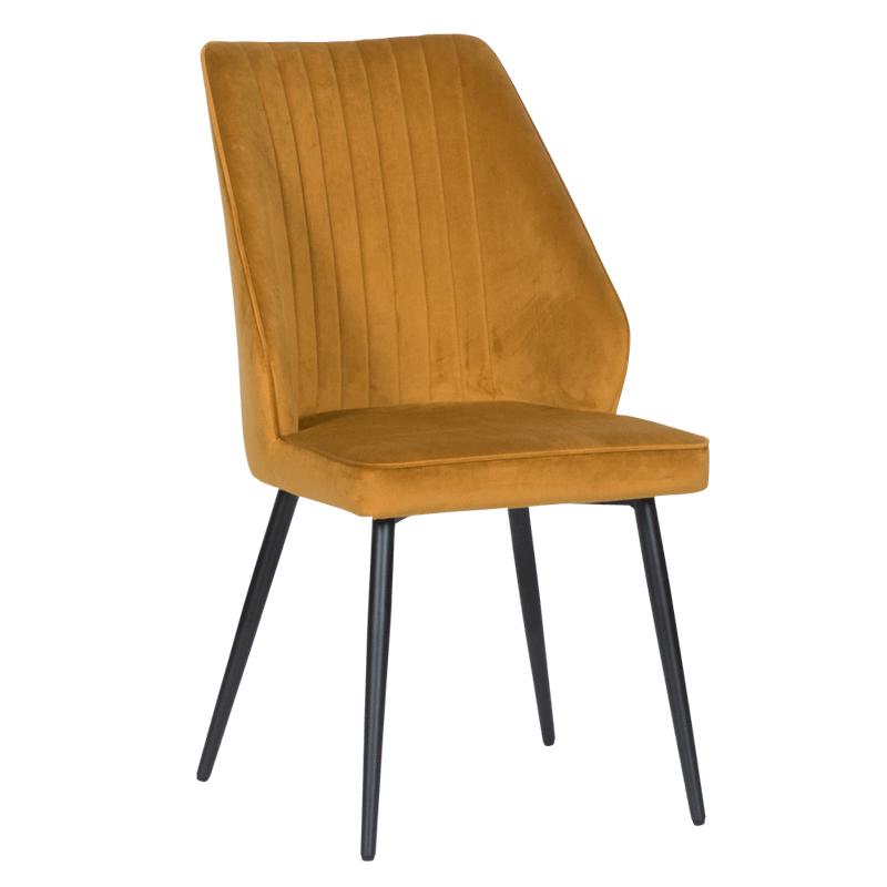 Трапезен стол МЕДЕЯ е модерен трапезен стол със стилна и изчистена визия, за изботката на която е използвана нежна дамаска и праховобоядисан метал за краката.