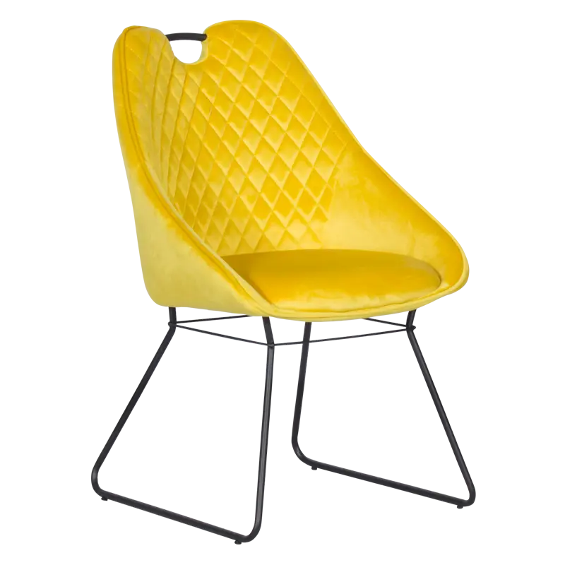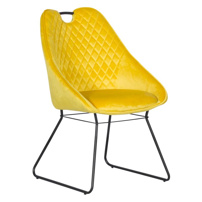ЖЕЛАНА е удобен трапезен стол с модерна визия. Моделът е с нестандартен и оригинален дизайн, за изработката на който е използвана висококачествена дамаска и праховобоядисан метал.