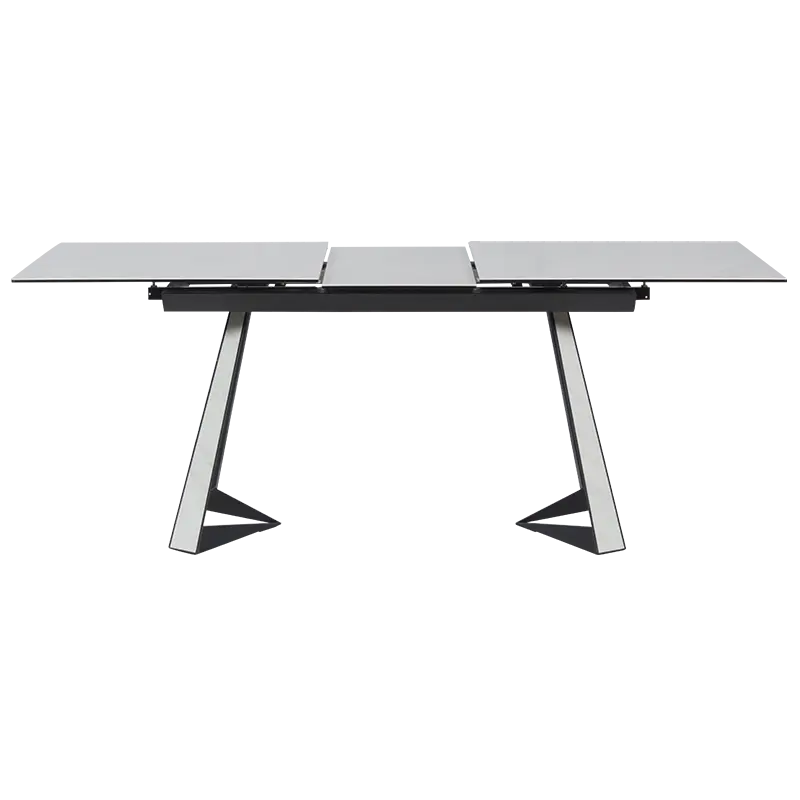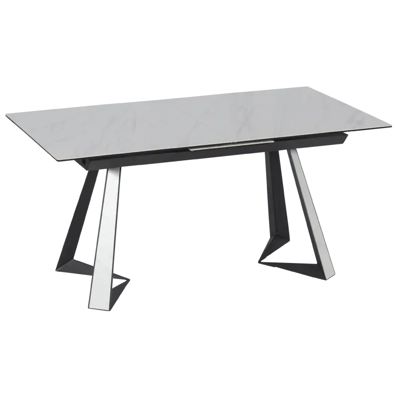 Разтегателната трапезна маса АЛФОНСО притежава елегантен и стилен дизайн. За изработката и са използвани висок клас материали – керамика, закалено стъкло и праховобоядисан метал. Плотът на масата е с ширина 90 см и дължина 160 см и 200 см в разтегнато положение.