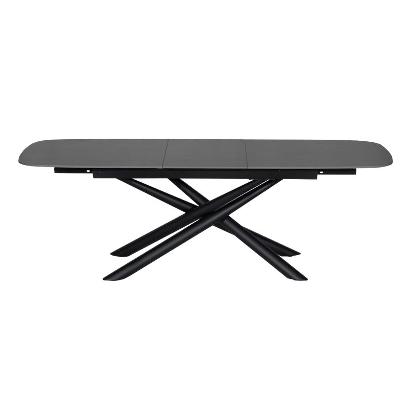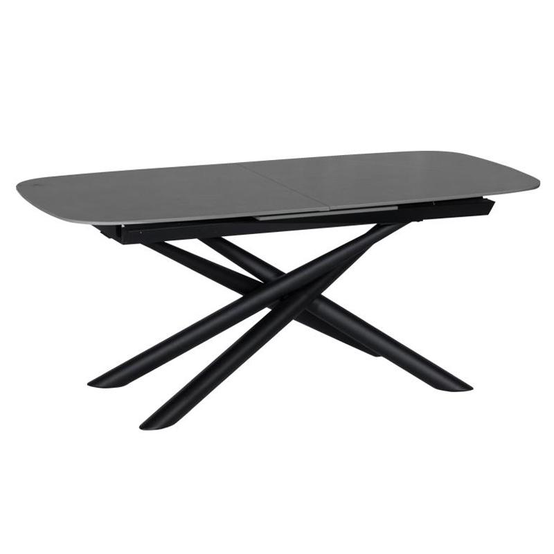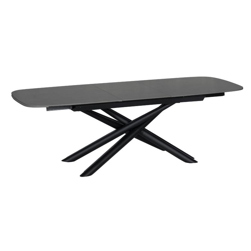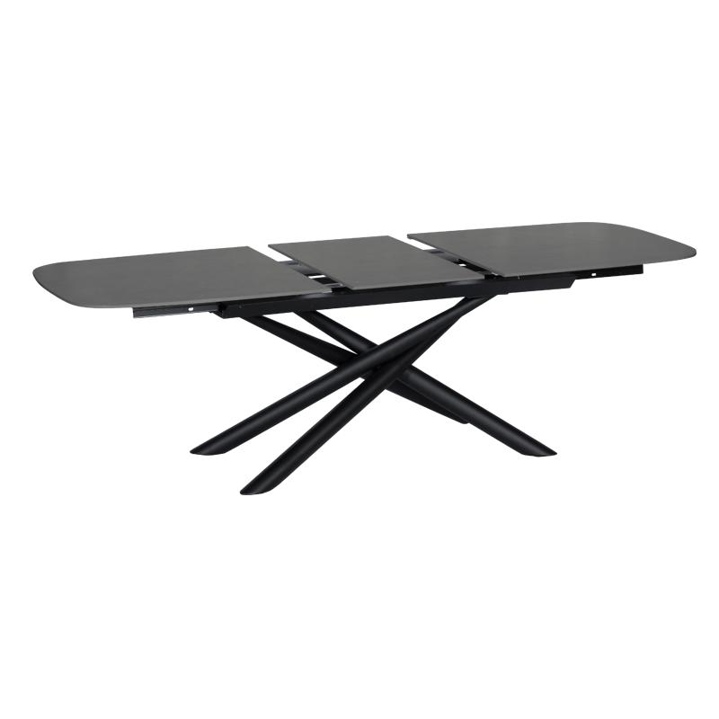 Tрапезната маса БРОК е модел с интересни и нестандартни крака, който ще създаде стилна и модерна атмосфера във вашия дом. Тя е с голям керамичен плот 180х90 см и функция за разтягане.