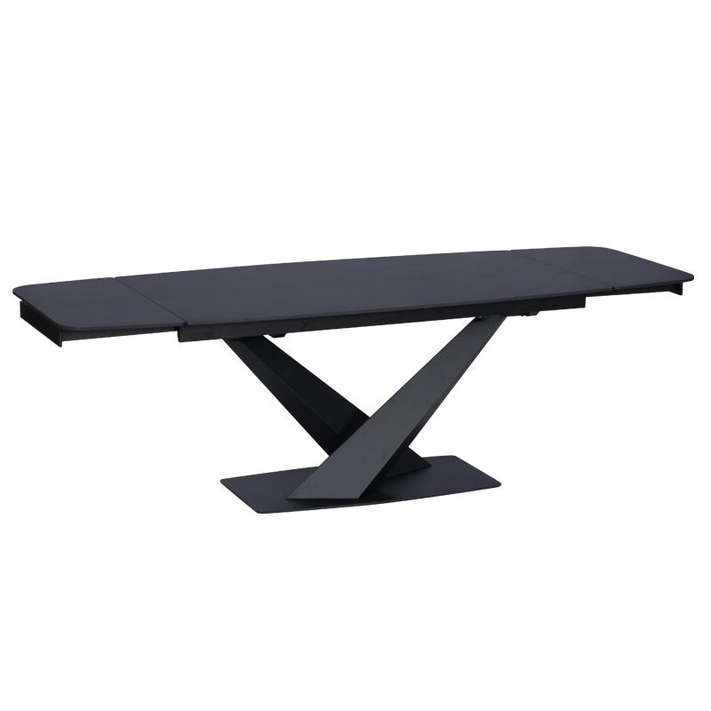 ЛЕНА е модерна и стилна трапезна маса с плот от керамика и функция за разтягане. Дизайнът на основата е разчупен и оригинален, а праховобоядисаният метал, от който е изработена, гарантира здравина и стабилност.