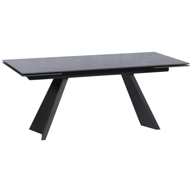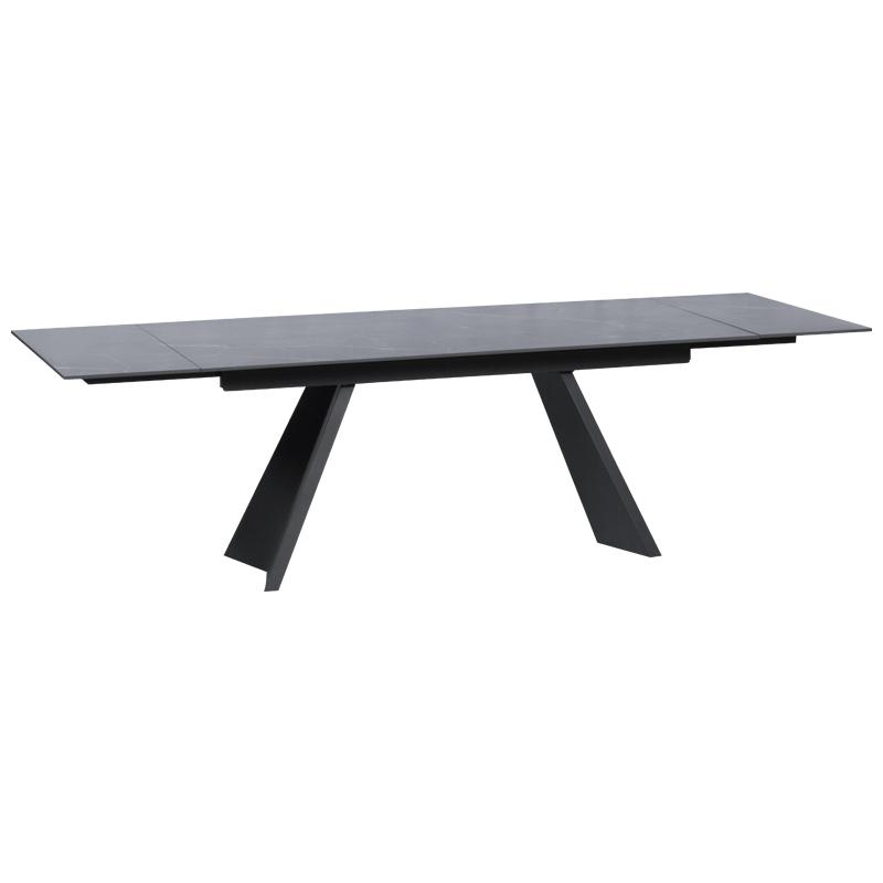 Tрапезна маса ЛЮБА разтегателна е модерна трапезна маса с интересна, стабилна основа, изработена от праховобоядисан метал. Тя е с правоъгълен керамичен плот с дебелина от 10 мм и практична функция за разтягане. Плотът се разтяга от двете страни на масата, в стандартно положение дължината му е 180 см, а след разтягане достига до 260 см, което я прави изключително удобна както за трапезария, така и за ресторанти.