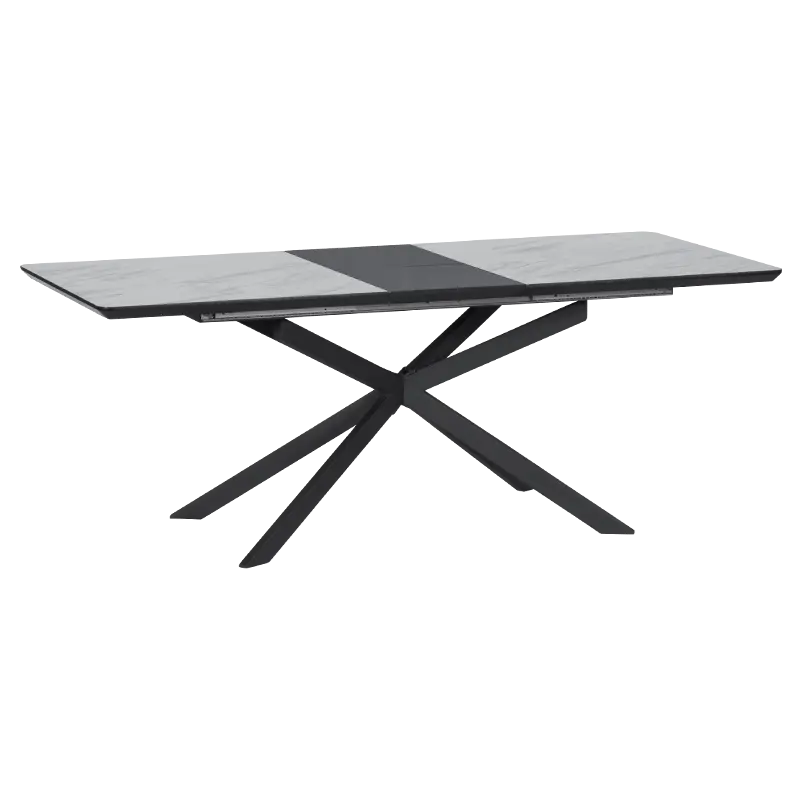 Трапезна маса МАРАЯ е модерна трапезна маса със стилна визия и нестандартни крака. Моделът е изработен от висококачествени материали и практична функция за разтягане.