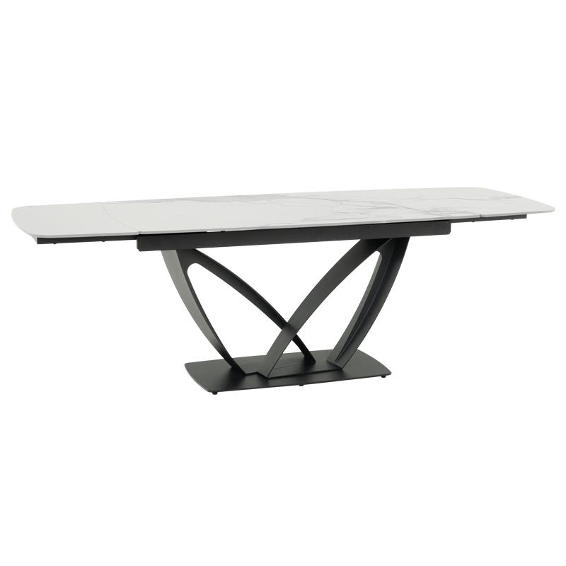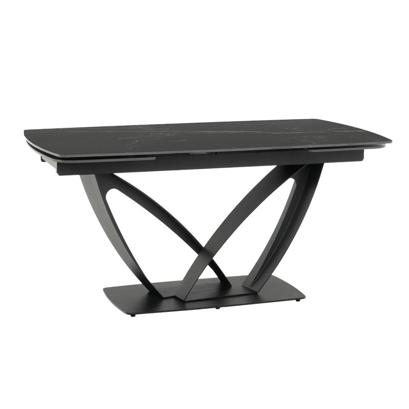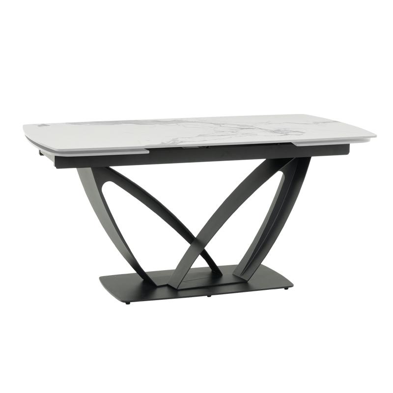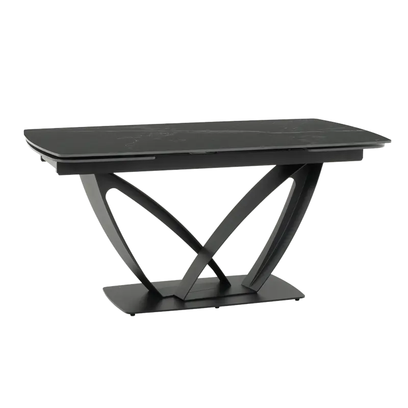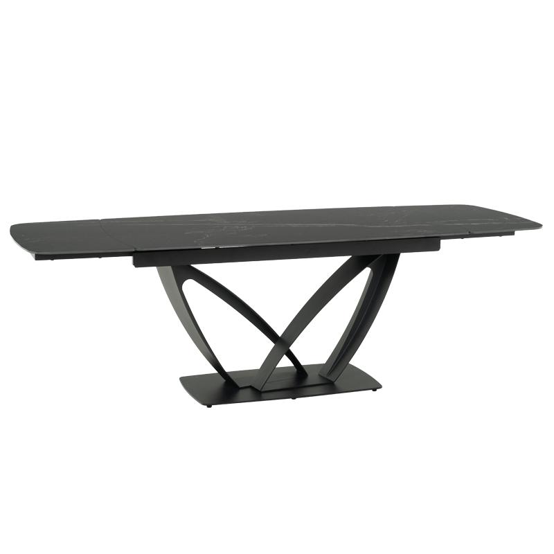 Трапезната маса ТЕМИРА е с интересна и нестандартна основа, изработена от праховобоядисан метал. Тя е с керамичен плот с шарки, наподобяващи мрамор. Благодарение на механизма за разтягане достига дължина до 240 см - така ще имате повече място, когато посрещате гости.