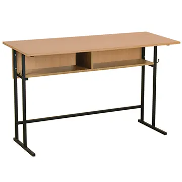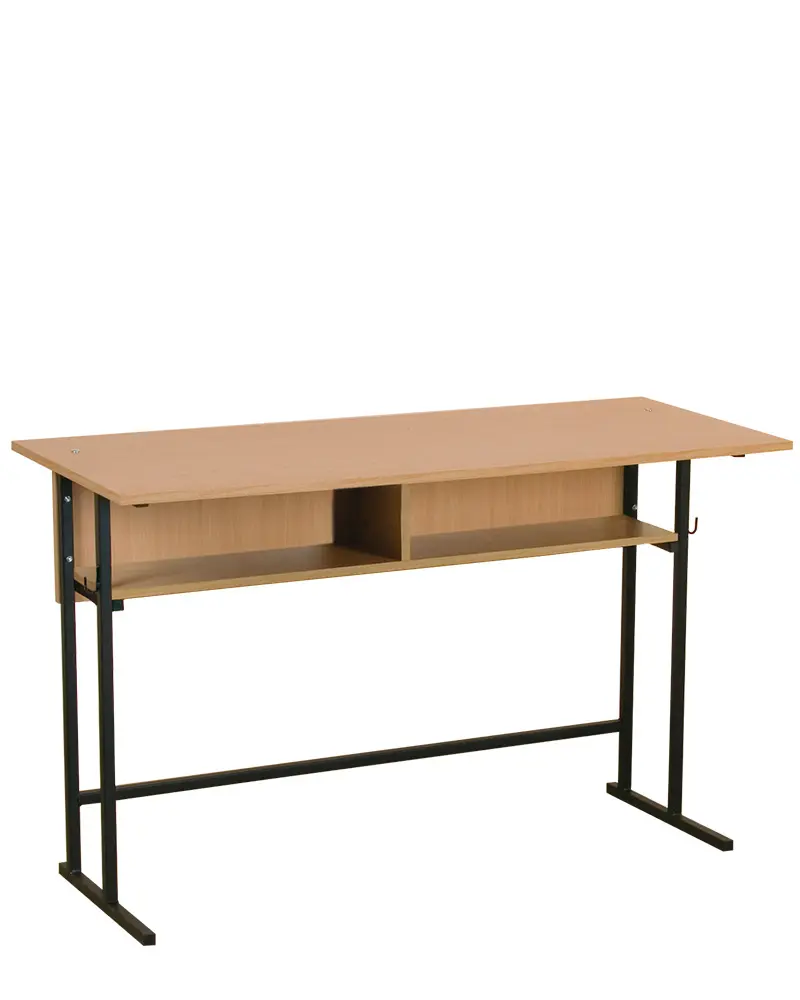 Ученически чин АНА E-162 2 места притежава допълнителен рафт за поставяне на учебници и лични вещи. Плоскостите са изработени от 16мм ПДЧ. Покритието на цветовете е полимерно прахово в цветове по RAL. Произведена е в България.