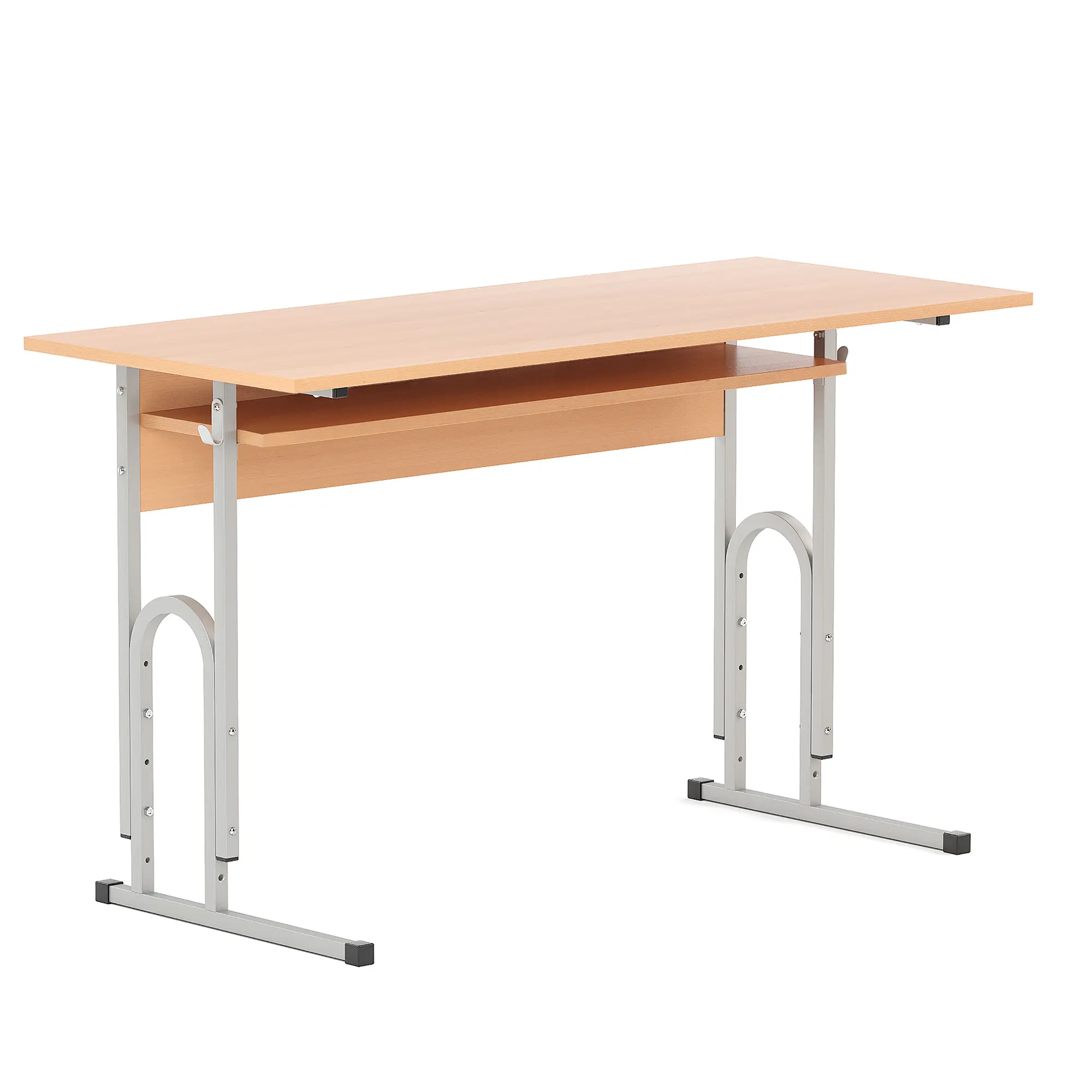 Ученически чин АНА E-174 2 места с рафт притежава механизъм за регулиране на височината в три позиции- 64, 70 и 76 см. Плоскостите са изработени от 16мм ПДЧ. Покритието на цветовете е полимерно прахово в цветове по RAL. Произведена е в България.