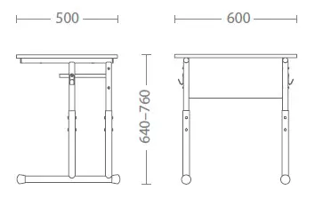 Ученически чин АНА E-176 притежава механизъм за регулиране на височината в три позиции- 64, 70 и 76 см и допълнителен рафт за поставяне на учебници и лични вещи. Плоскостите са изработени от 16мм ПДЧ. Покритието на цветовете е полимерно прахово в цветове по RAL. Произведена е в България.