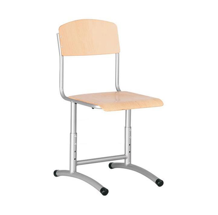 Ученическият стол АНА Е-273  сива рамка притежава механизъм за регулиране на височината в три позиции- 38, 42 и 46 см. Седалката и облегалката са изработени от 7 мм слоест бук. Покритието на цветовете е полимерно прахово  в цветове по RAL.