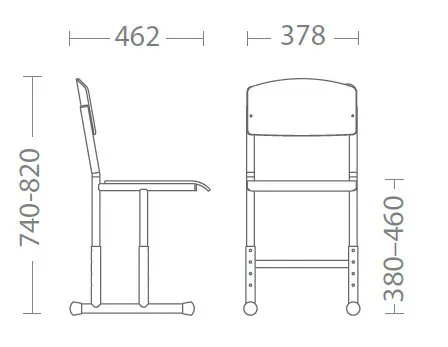 Ученическият стол АНА Е-276 сива рамка притежава механизъм за регулиране на височината в три позиции- 38, 42 и 46 см. Седалката и облегалката са изработени от 7мм слоест бук. Покритието на цветовете е полимерно прахово в цветове по RAL. Произведен е в България.