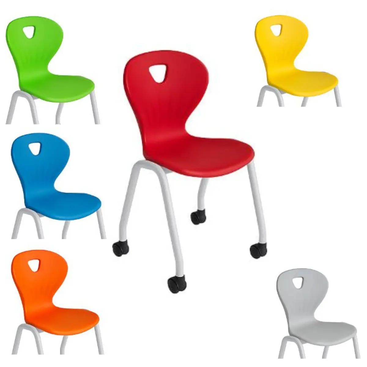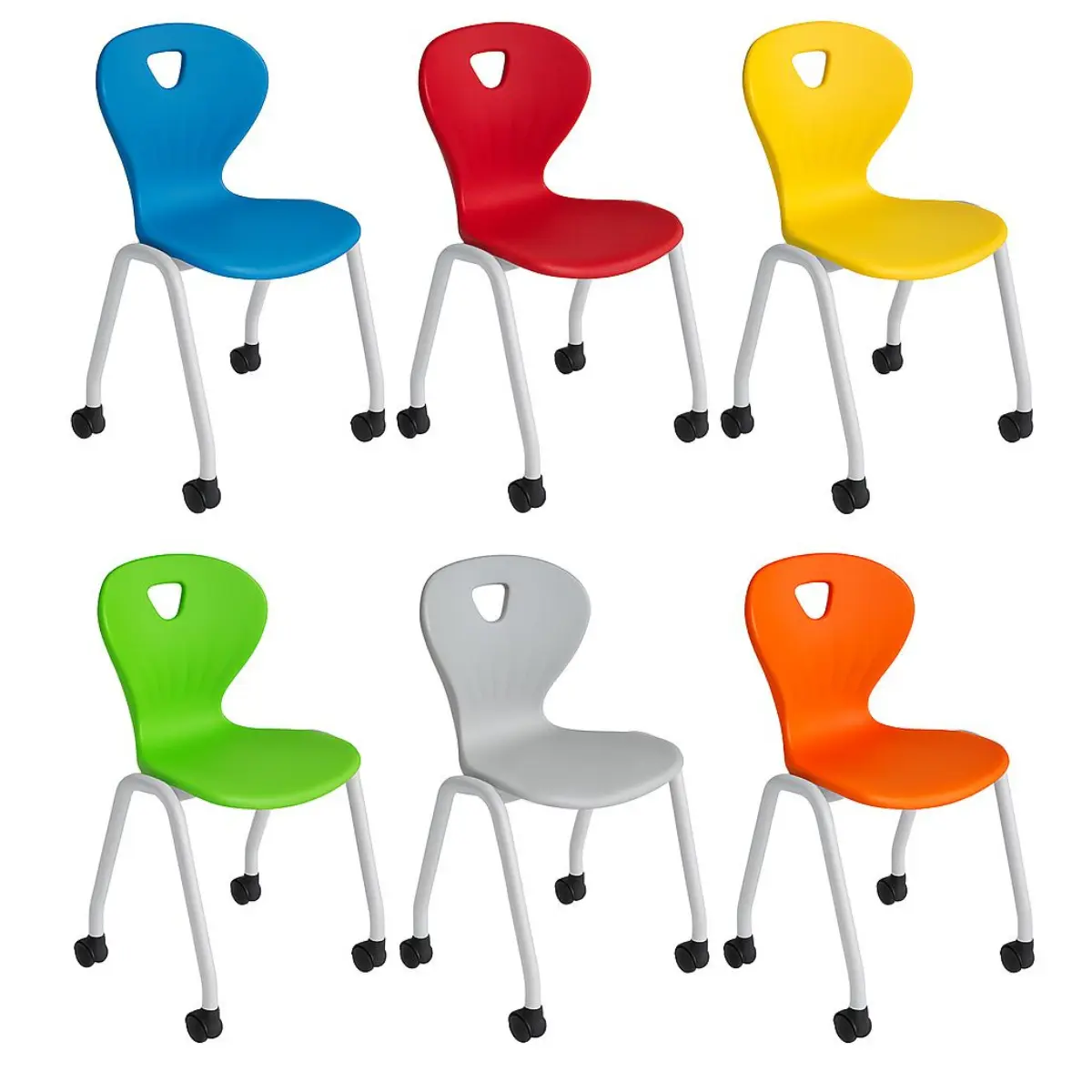 Ученически стол КОРИ L е премиум модел на колелца, изграден върху здрава метална основа и покрит с електростатично нанасяно прахово лаково покритие за още по-голяма издръжливост и елегантен вид.