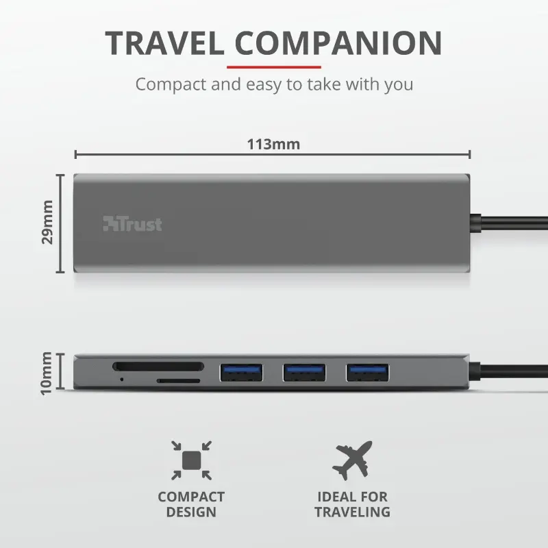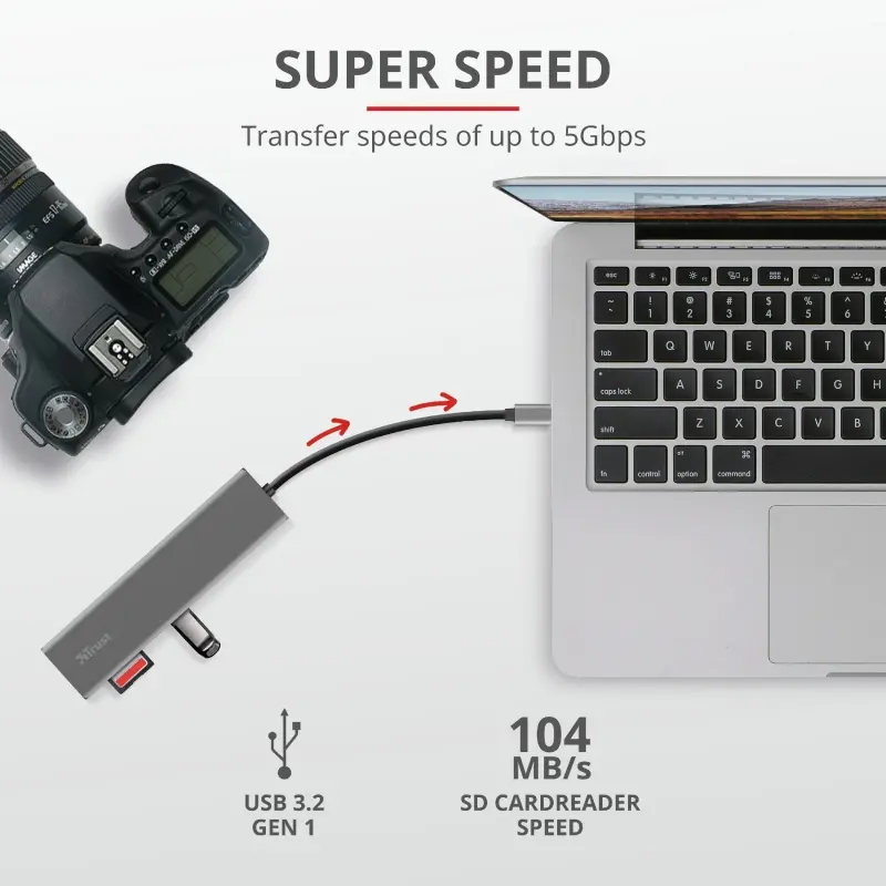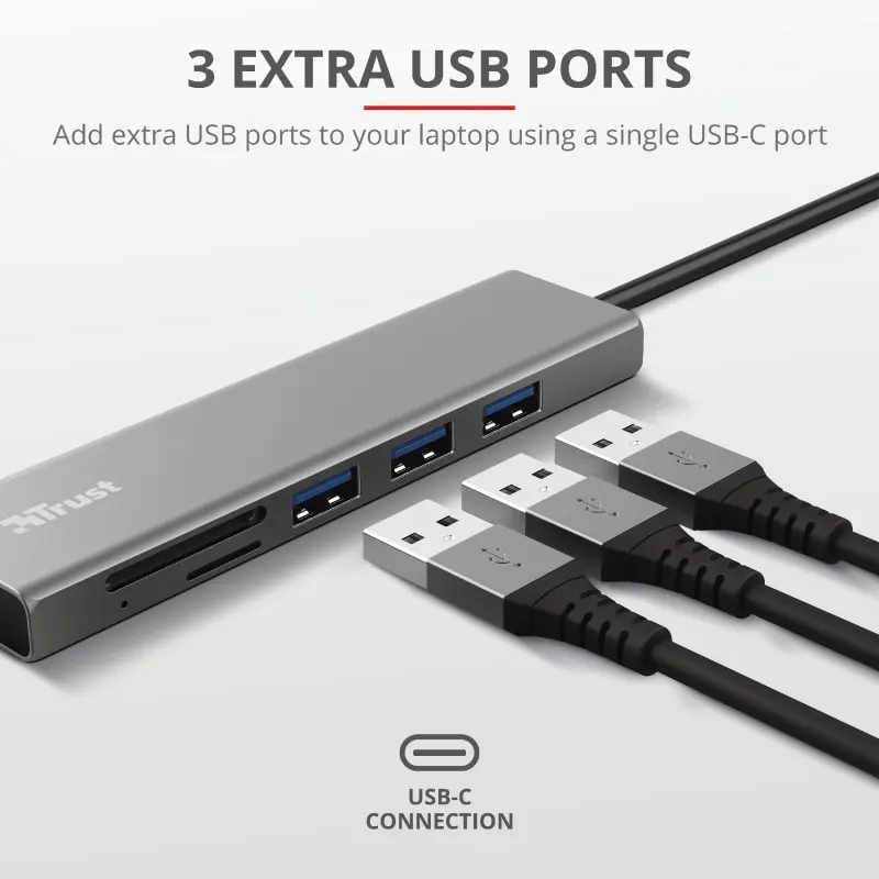| Други | Compact and easy to take with you; Durable die-cast aluminium housing; Connect up to 3 USB devices using a single USB-C port on your laptop or PC; Fast data transfer speeds of up to 5Gbps with USB 3.2 Gen 1; Supports (micro) SD, SDHC and SDXC up to 2 TB |
