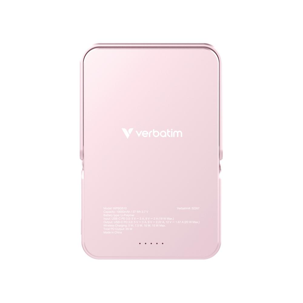Външна батерия Verbatim Charge 'n' Go Power Bank with Stand Magnetic Wireless 10000mAh Pink