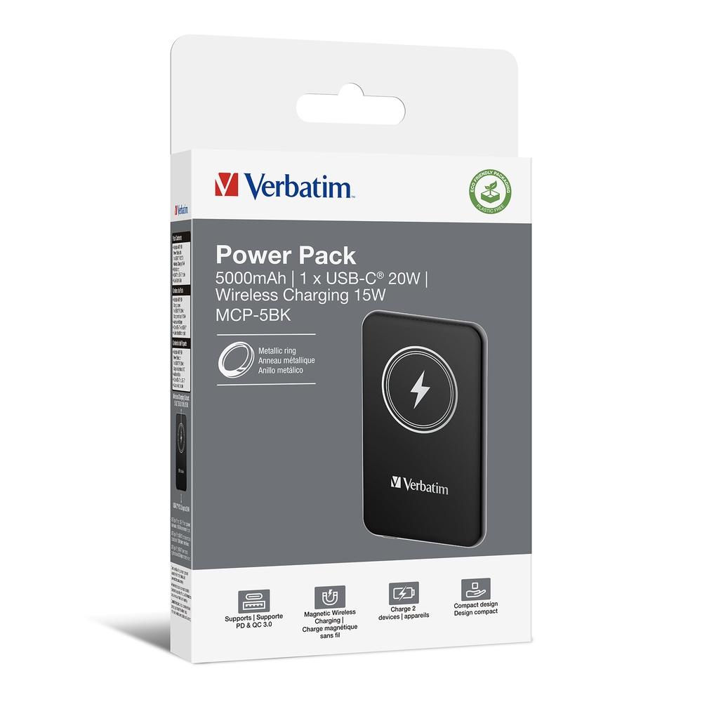 Външна батерия Verbatim MCP-5BK Power Pack 5000 mAh with UBS-C® PD 20W / Magnetic Wireless Charging 15W Black
