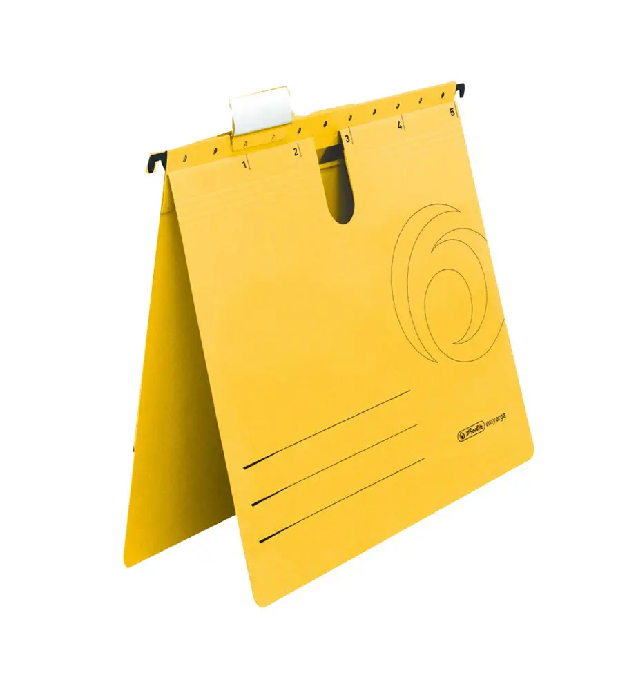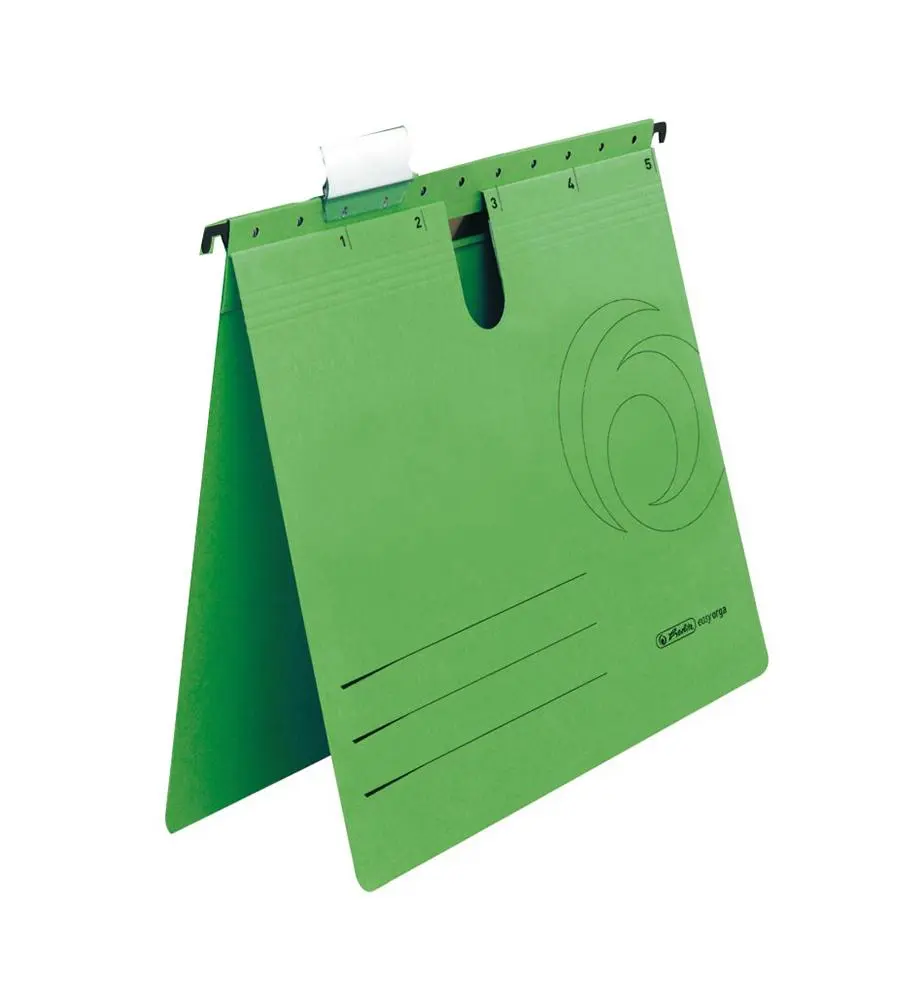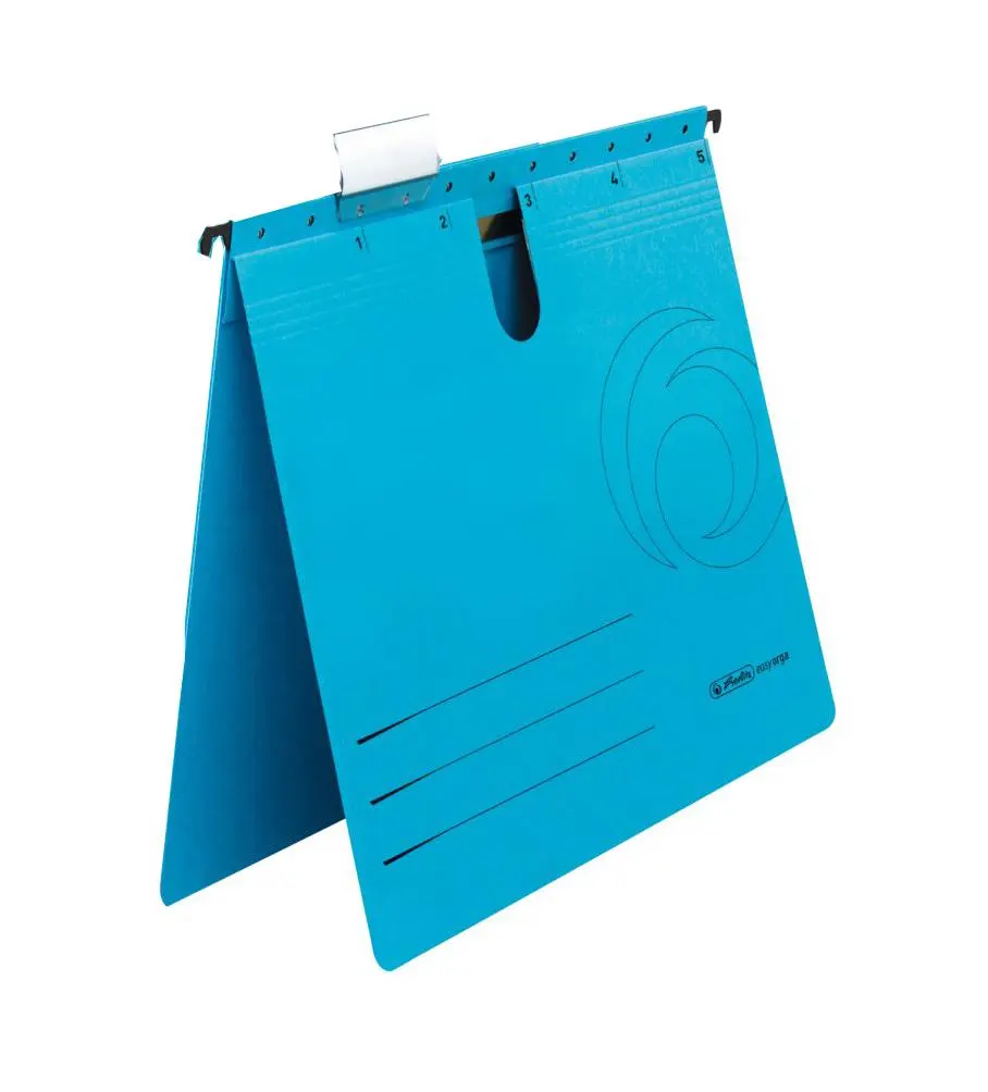 Висящата папка L 5 бр е подходяща за подреждане на документи в метални кардекси, боксове и картотеки с цел улесненото намиране на търсената от вас папка с информация. Притежава подвижна табелка за надписване и метални шини за окачване.