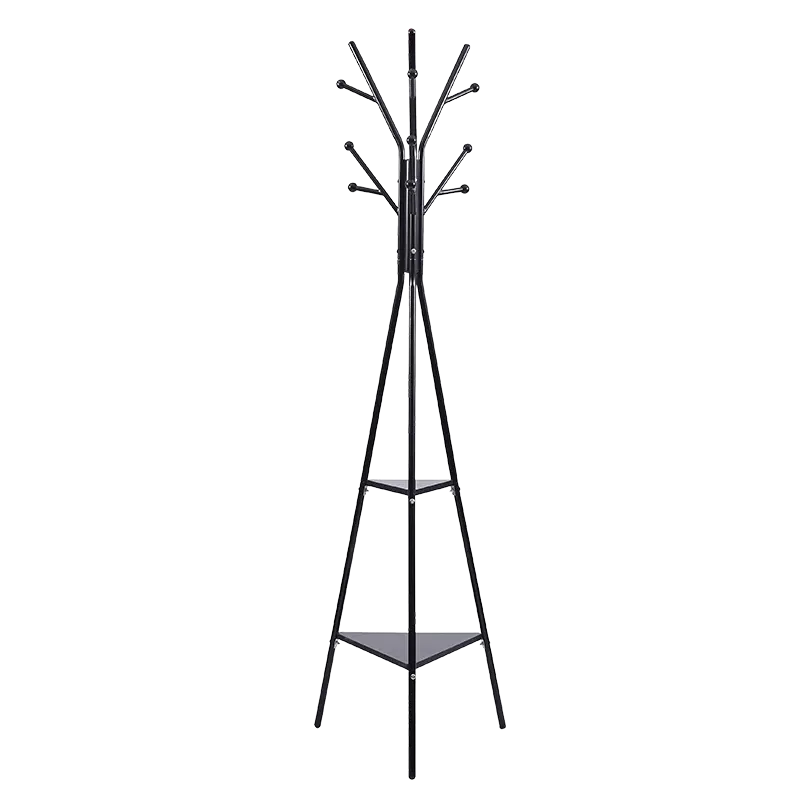 Закачалката за дрехи LINDOME съчетава издръжливост и елегантен дизайн. С по-широката си основа и два удобни рафта в долната част, тя предлага място за обувки, чанти или аксесоари. Има 9 куки за закачане. Декоративните елементи ѝ придават стилен вид, а стабилната конструкция гарантира безопасност дори при по-тежки дрехи. Лесна е за преместване и подходяща за различни интериорни стилове.