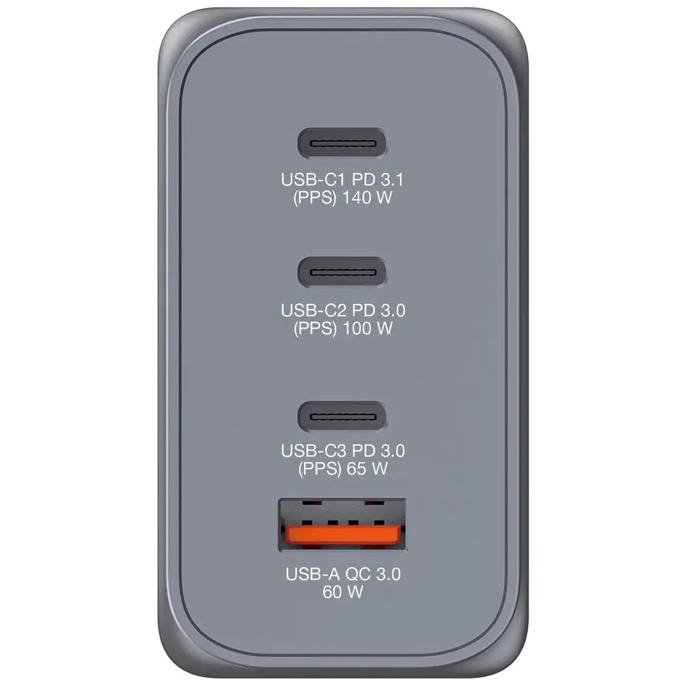 | Мощност, W | Total Output: 240W max, USB-C1 PD 3.1 (PPS) Output:Max PD 3.1 140W (when used alone), USB-C2 PD 3.0 (PPS) Output:Max PD 3.0 100W (when used alone), USB-C3 PD 3.0 (PPS) Output:Max PD 3.0 65W (when used alone), USB-A QC 3.0 Output: Max 60W (when used alone) |